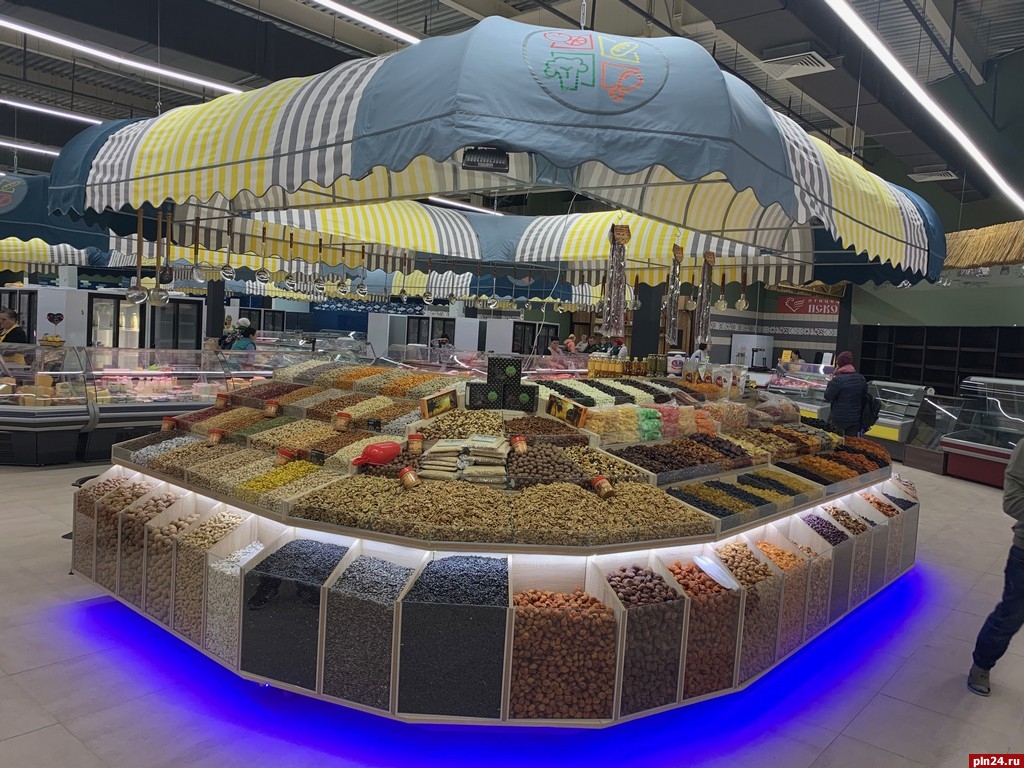 На территории фреш-маркета представлены товары псковских производителей.