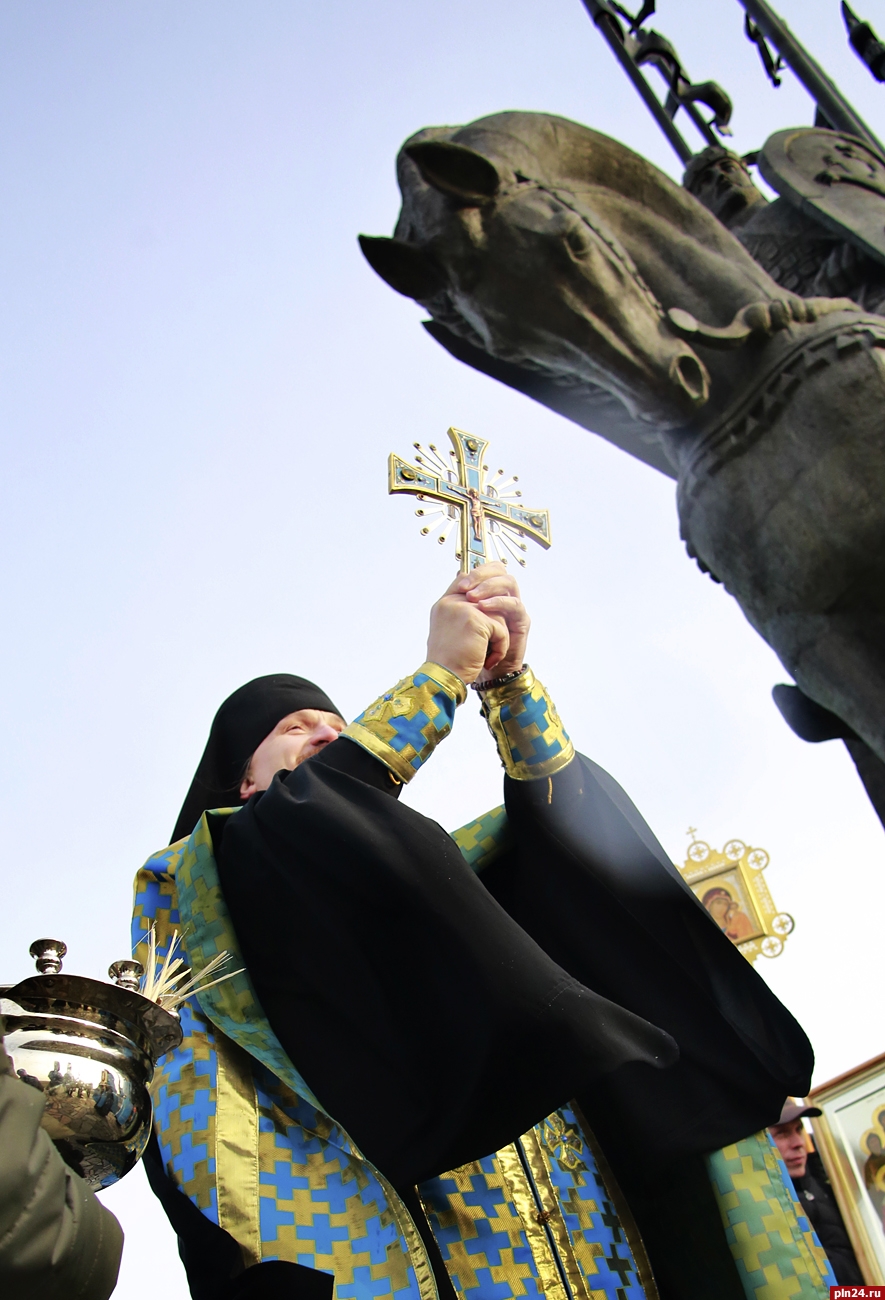 Крестный ход начался с Подворья Псково-Печерского монастыря. По пути хода участники сделали несколько остановок: в Черехе, Крестах, около памятника Александру Невскому, а также в Орлецах.