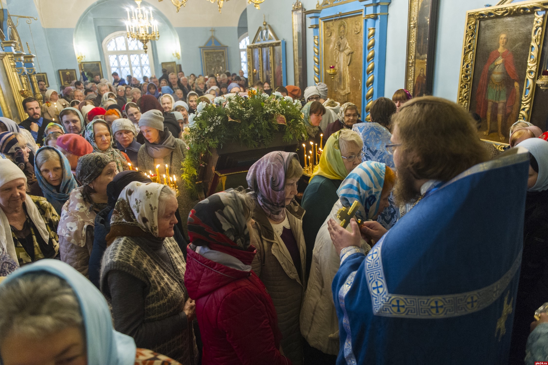 По запричастном стихе отец Алексий обратился к богомольцам с проповедью, в которой подчеркнул спасительное значение заступничества Пресвятой Богородицы за русский народ не только в годы Смутного времени, но и в наши дни.