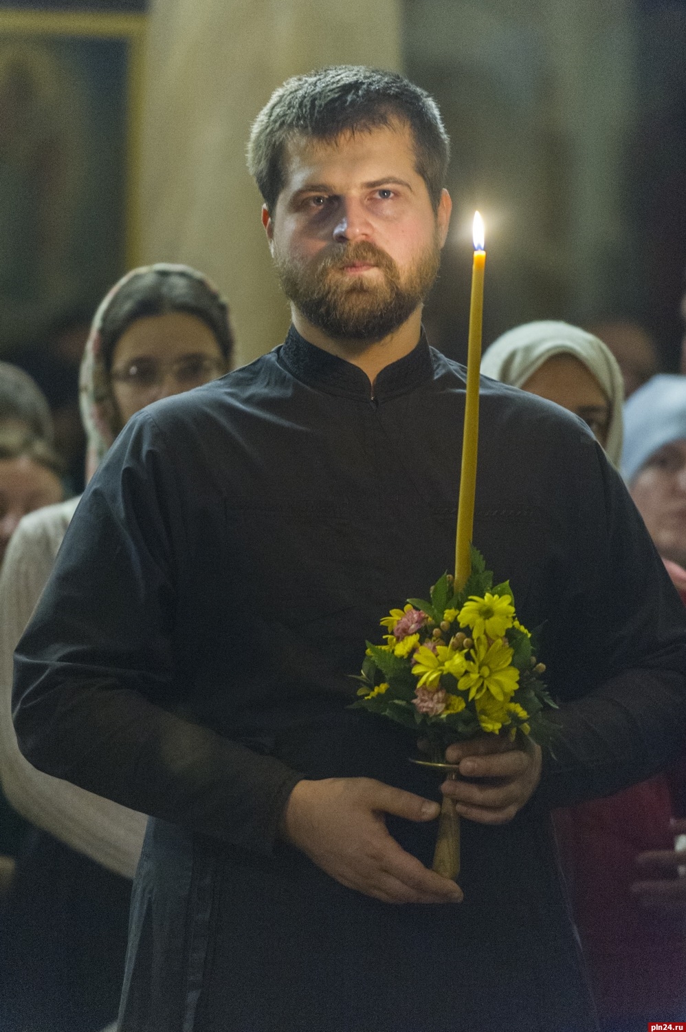 Его Высокопреосвященству сослужили: протоиерей Андрей Вахрушев, настоятель храма Успения Божией Матери (с Полонища); архимандрит Елевферий (Попов), клирик храма Успения Божией Матери (с Полонища); иеромонах Иларион (Карандеев), насельник Свято-Успенского Псково-Печерского монастыря; гости епархии в священном сане.