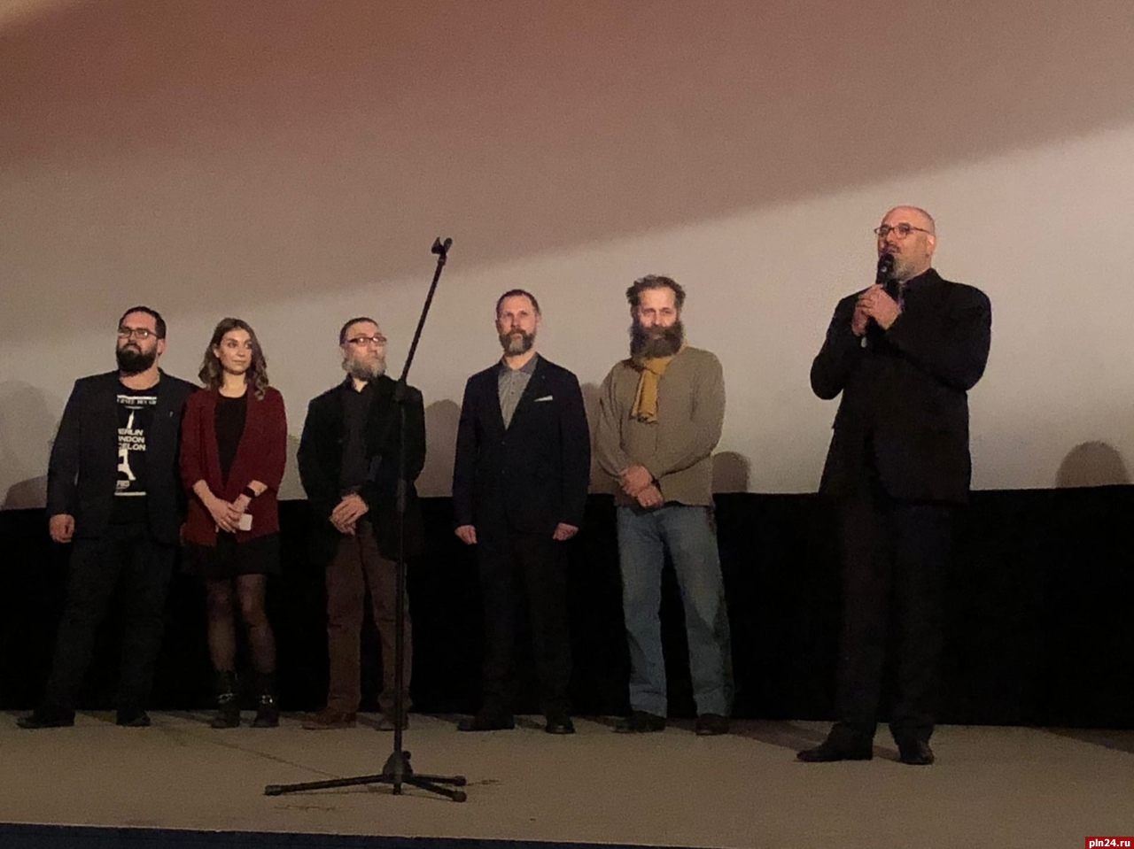 Опережая вопрос зрителей предпремьерного показа фильма «Русь и Ганза. Путь навстречу», режиссер Виктор Носкин прочитал стихотворение, в котором еще до начала ленты дал главный ответ собравшейся в кинотеатре «Победа» псковской публике: «Фильм о России».