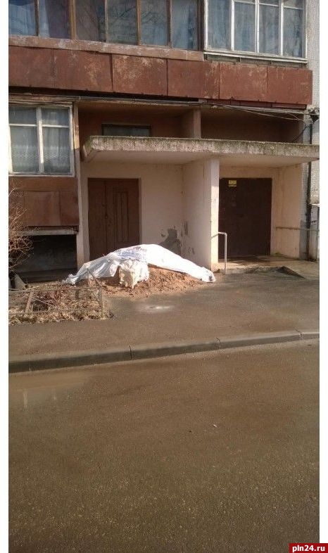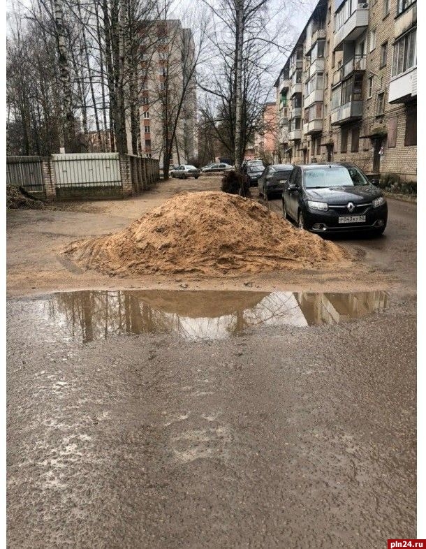 У нескольких многоквартирных домов в Великих Луках возле подъездов выросли песчаные груды. Об этом с возмущением сообщил местный житель на сайте губернатор.рф.