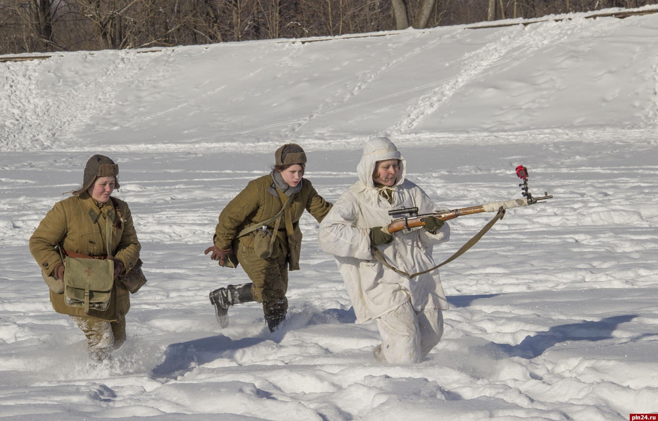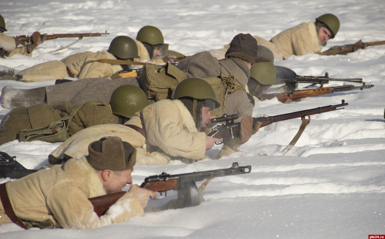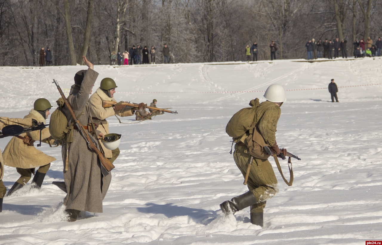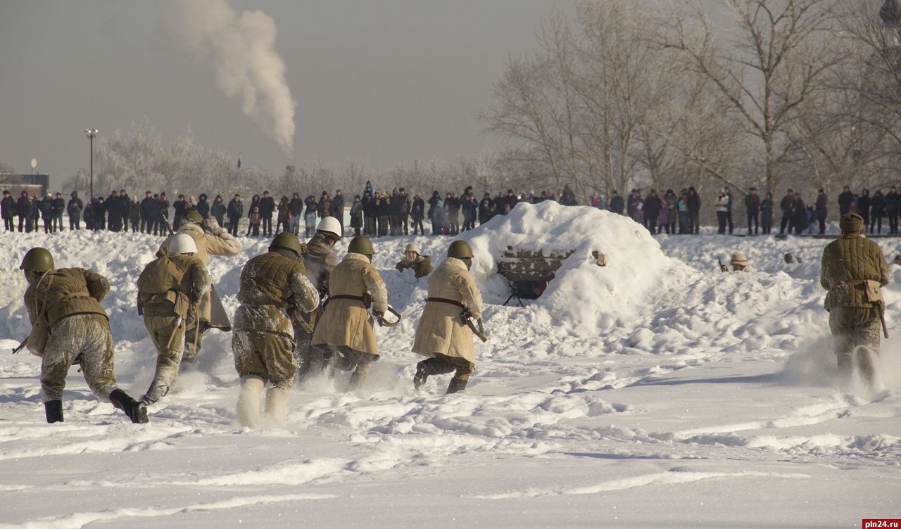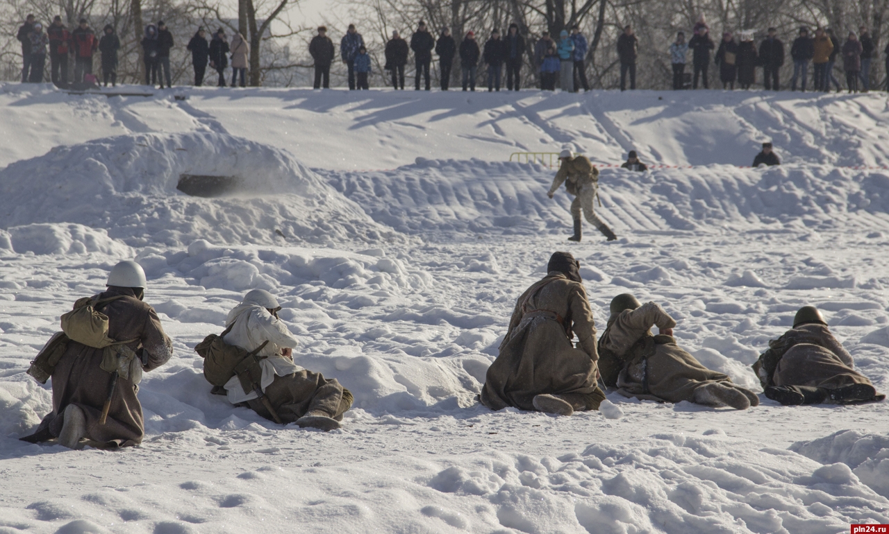 Подвиг Александра Матросова реконструировали 23 февраля, в День защитника Отечества, в Великих Луках.