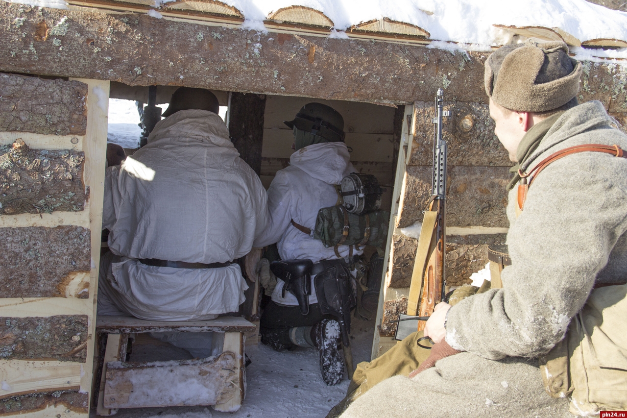 Как передает корреспондент Псковской Ленты Новостей, на площадке на территории крепости максимально точно воспроизвели условия, при которых Александр Матросов совершил свой подвиг. Реконструкторы из Санкт-Петербурга построили немецкие дзоты, с которыми в феврале 1943 года столкнулись подразделения 91-й отдельной Сибирской добровольческой бригады.