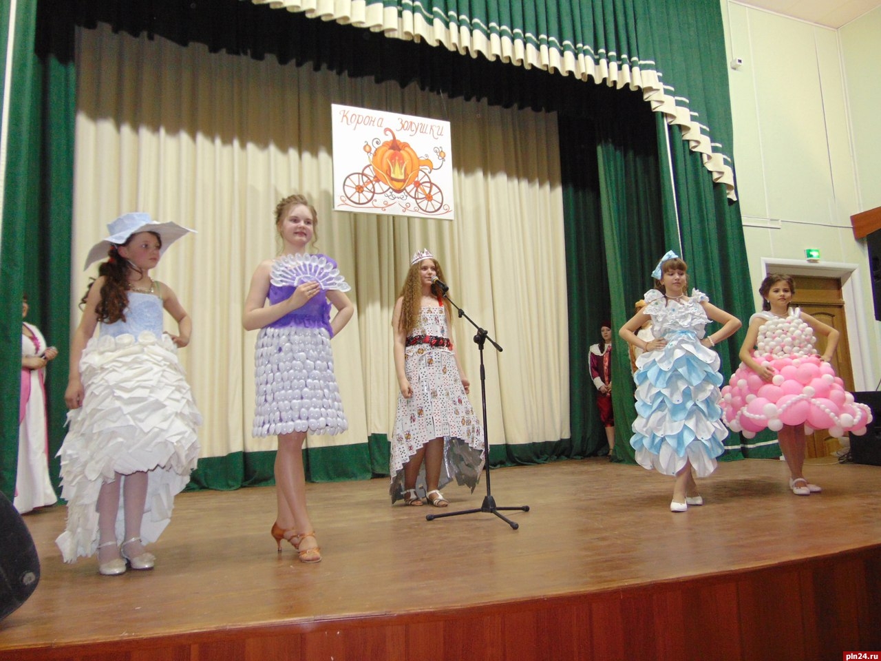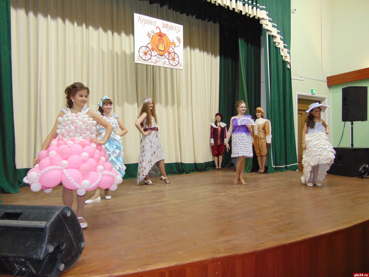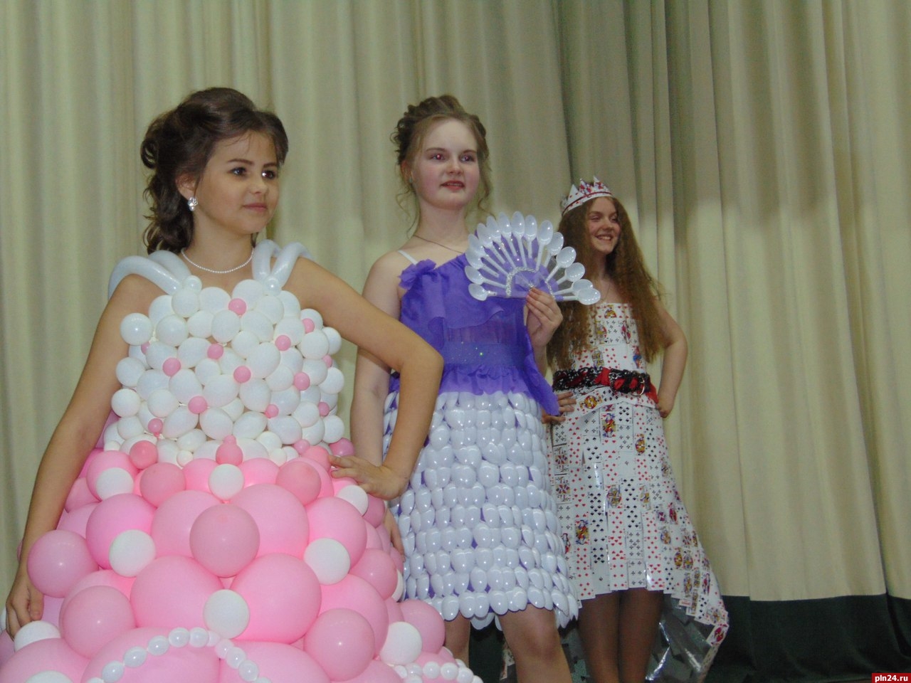 В финальном конкурсе девочки продемонстрировали свои наряды, которые с мамами и даже с папами и одноклассниками создавали не один день. Бальные платья были изготовлены из игральных карт, шариков, разнообразной бумаги, пластмассовых ложек, других бытовых материалов. Как не странно, но из нехитрых материалов получились удивительные по красоте наряды.