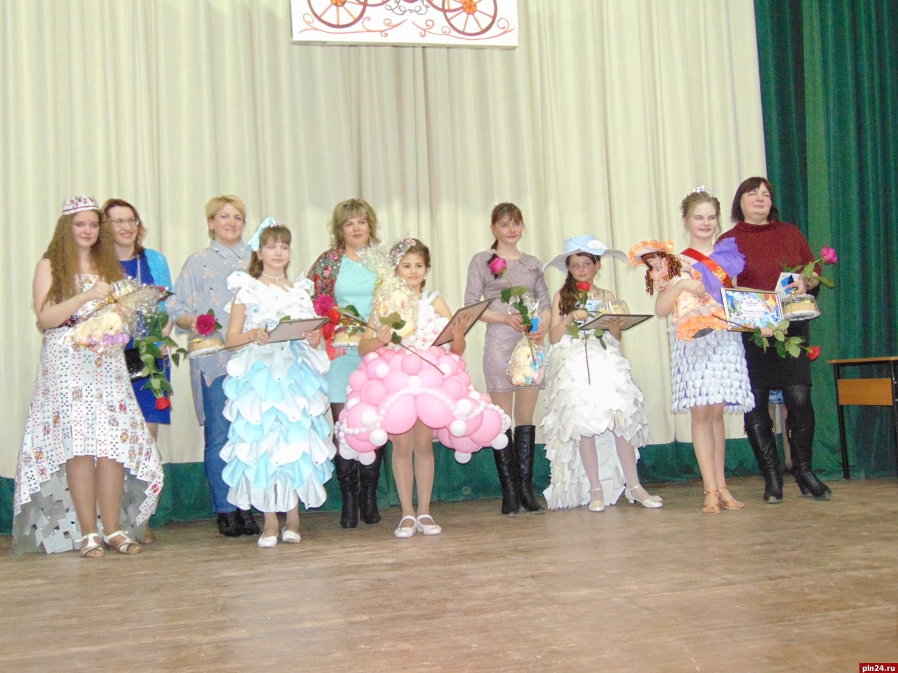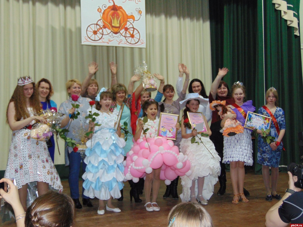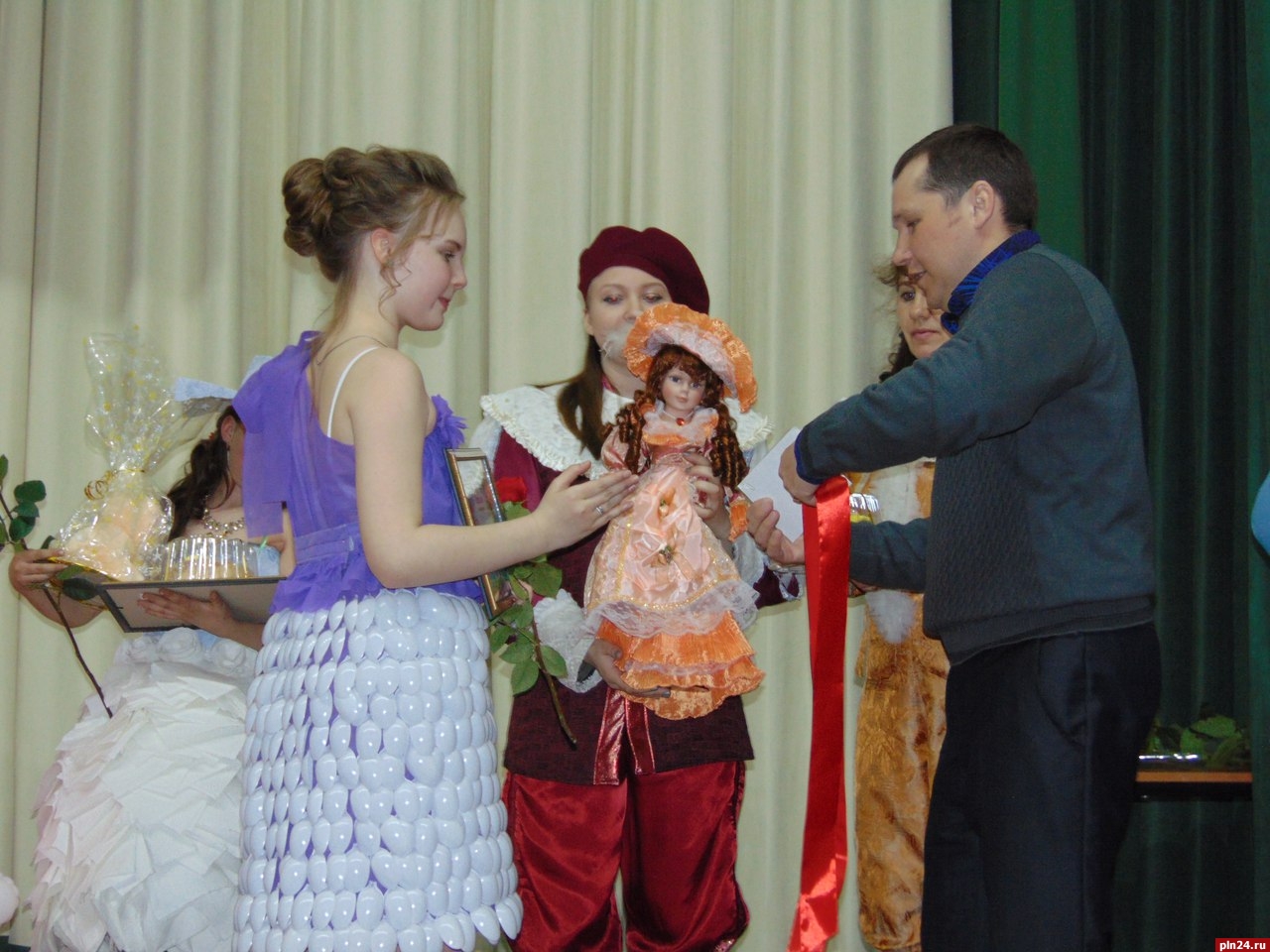 В финальном конкурсе девочки продемонстрировали свои наряды, которые с мамами и даже с папами и одноклассниками создавали не один день. Бальные платья были изготовлены из игральных карт, шариков, разнообразной бумаги, пластмассовых ложек, других бытовых материалов. Как не странно, но из нехитрых материалов получились удивительные по красоте наряды.
