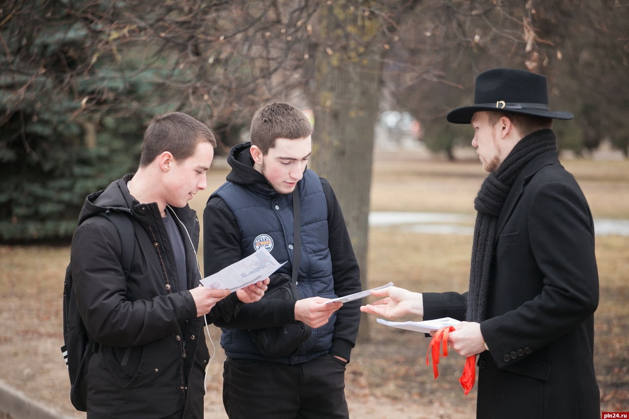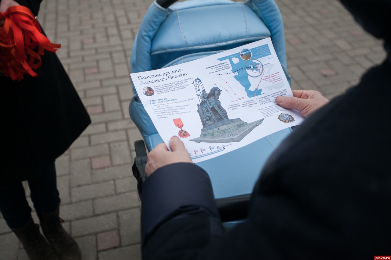 В четверг, 5 апреля, в Пскове, Гдове и Порхове проходит молодежная патриотическая акция, приуроченная к 776-й годовщине победы дружины князя Александра Невского над немецкими рыцарями в Ледовом побоище. Как сообщили Псковской Ленте Новостей в пресс-службе администрации региона, в рамках мероприятия члены региональной общественной организации «Волонтеры Победы» вместе с реконструкторами раздают жителям области алые ленточки и листовки с информацией о ратных подвигах великого русского полководца.
