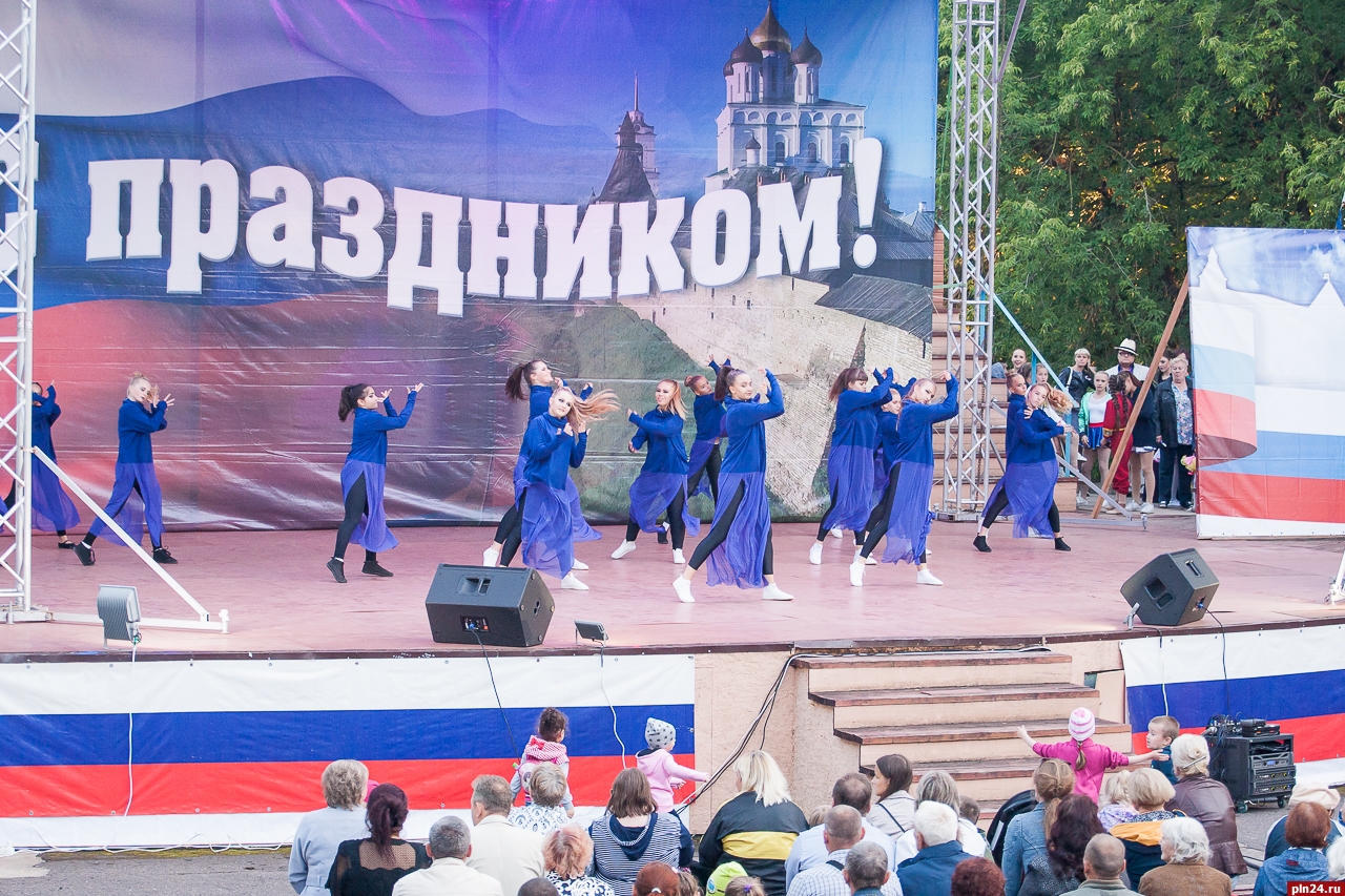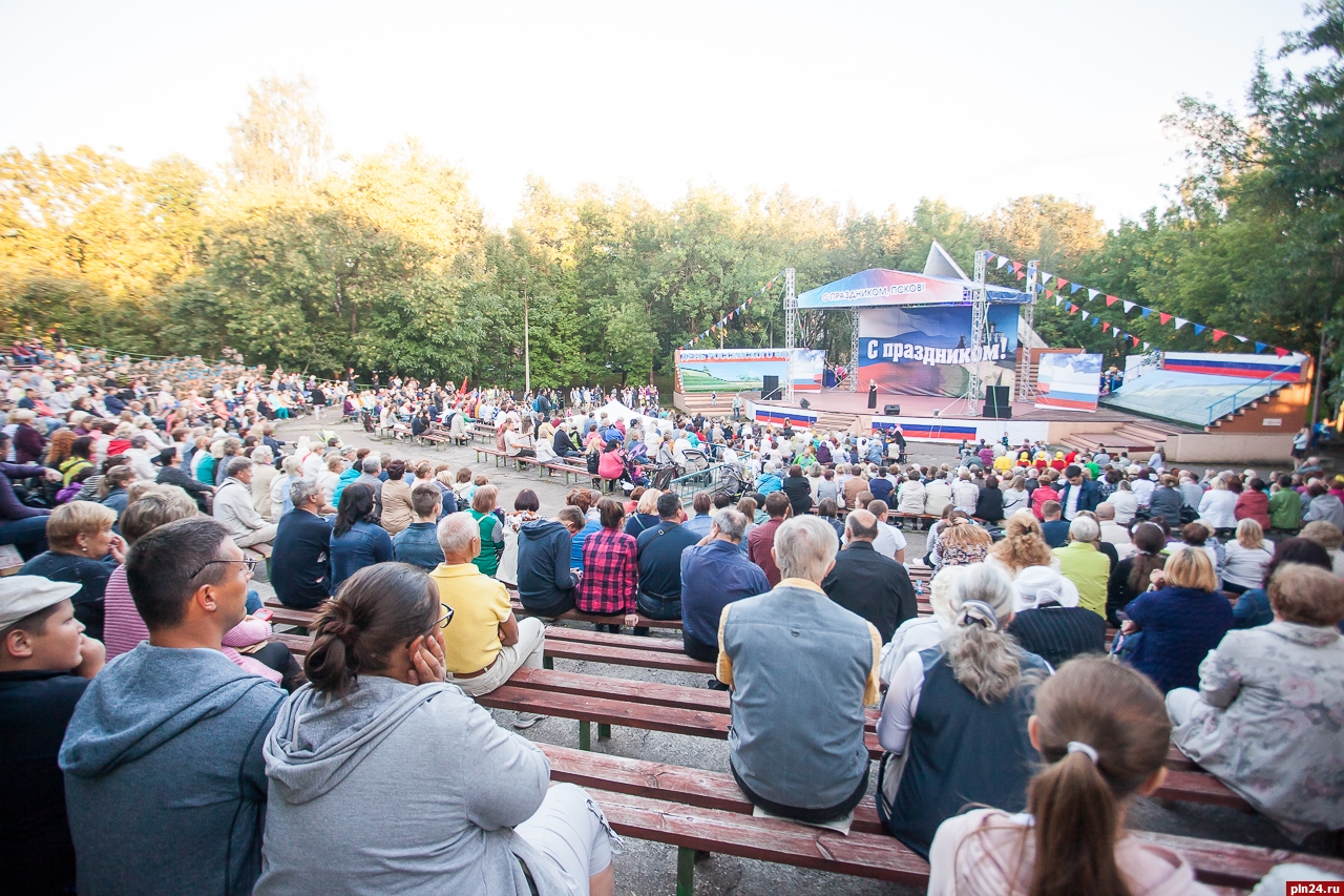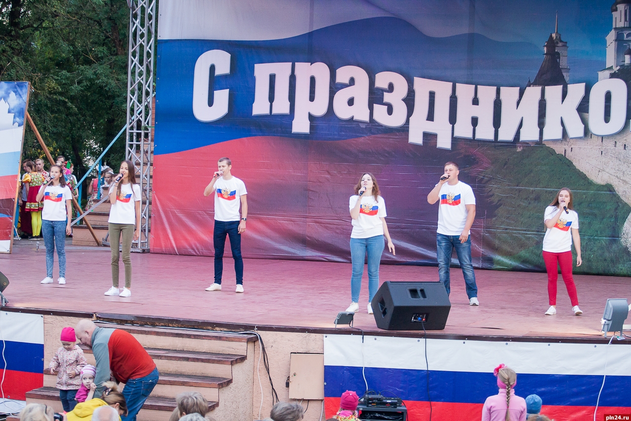 22 августа в 19.00 в Пскове в Зеленом театре состоялась тематическая концертная программа «Мы вместе - под флагом России». Праздник начался с торжественного вноса Российского триколора.