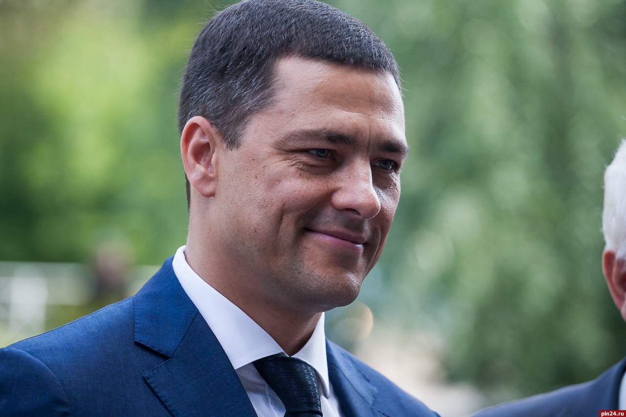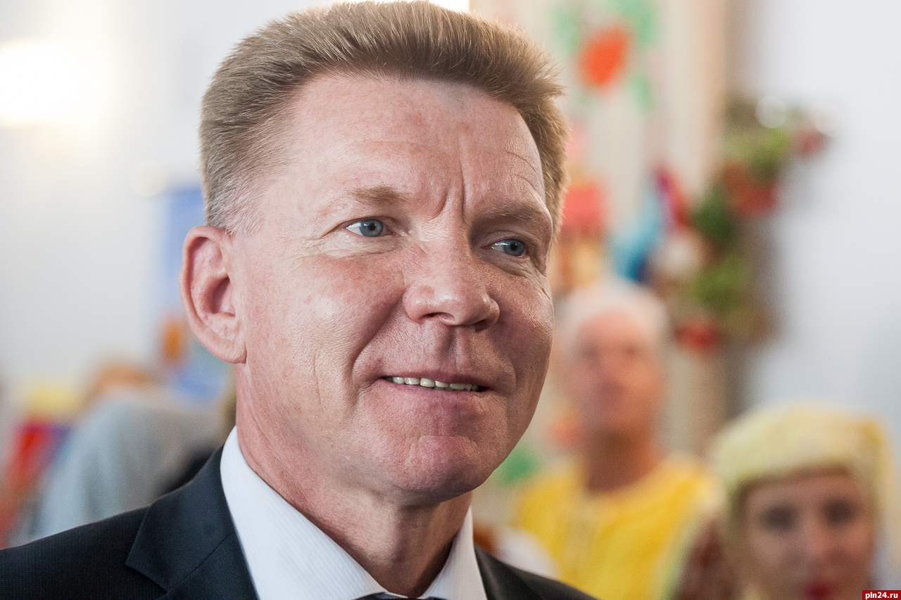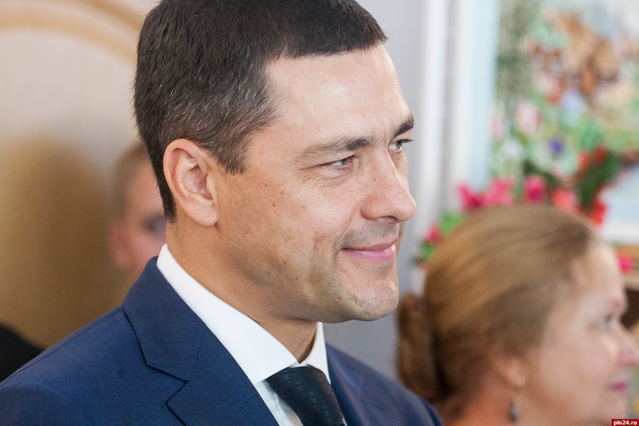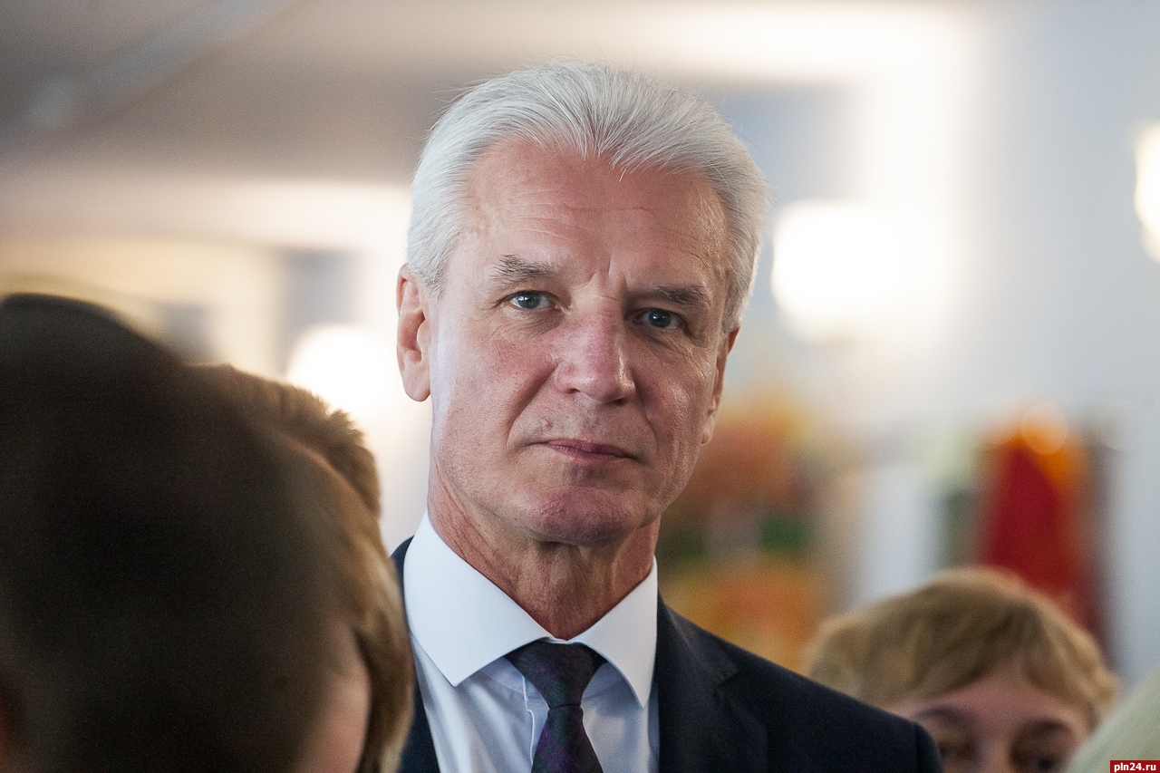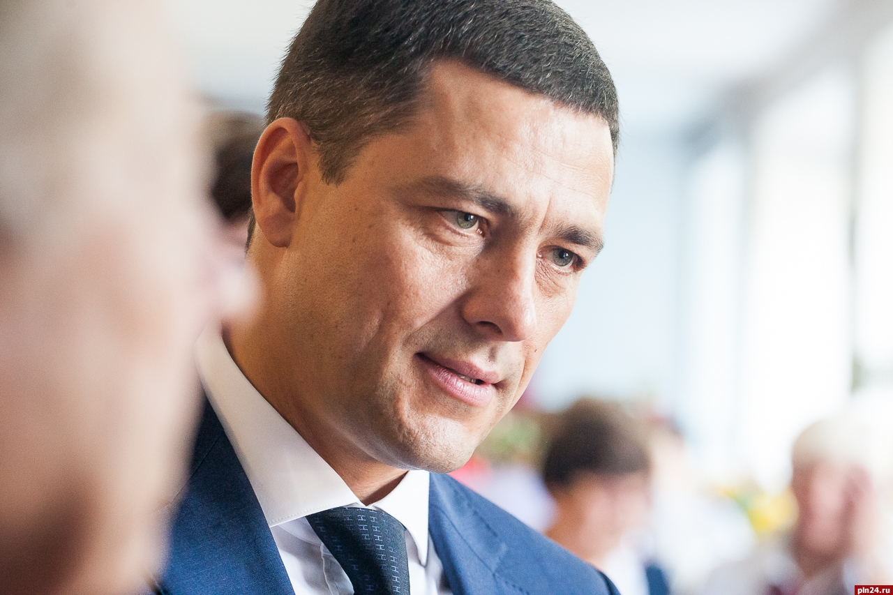 Бежаницкий район представил врио губернатора свою продукцию - копченую рыбу, сало, блинчики с творогом, свежий урожай слив. Ветераны из Бежаниц угостили врио хлебом с солью.