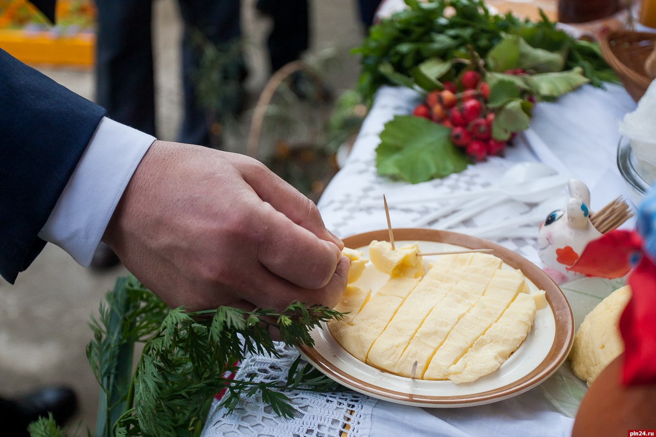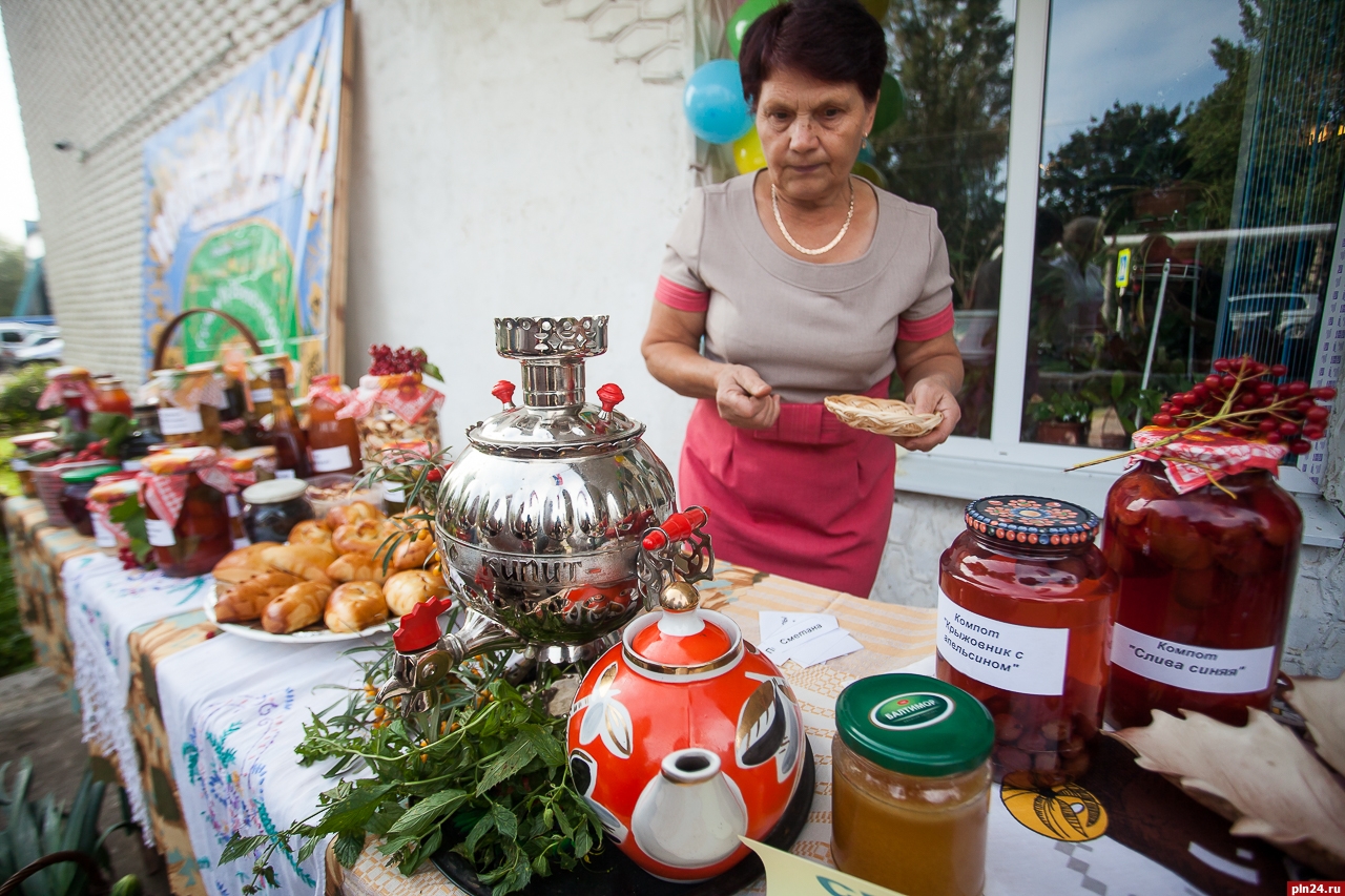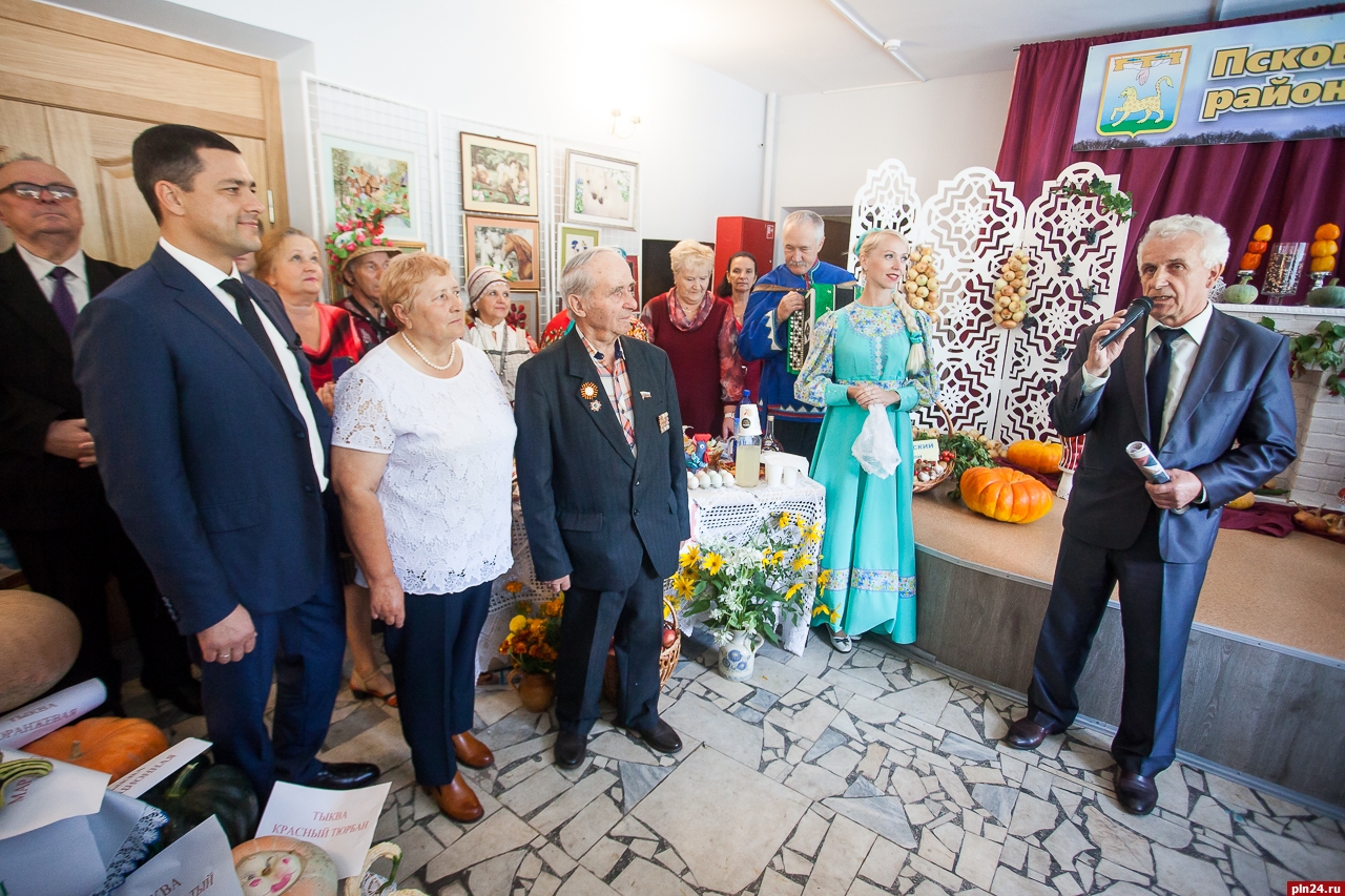 Ветераны Островского района рассказали губернатору о технологии приготовления домашнего творога и сыров. Ольга Гаврилова из Опочецкого района привезла на конкурс большой пирог, домашние йогурты и соленья, свежие фрукты и овощи.