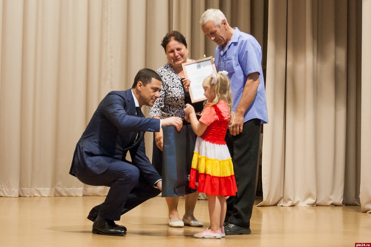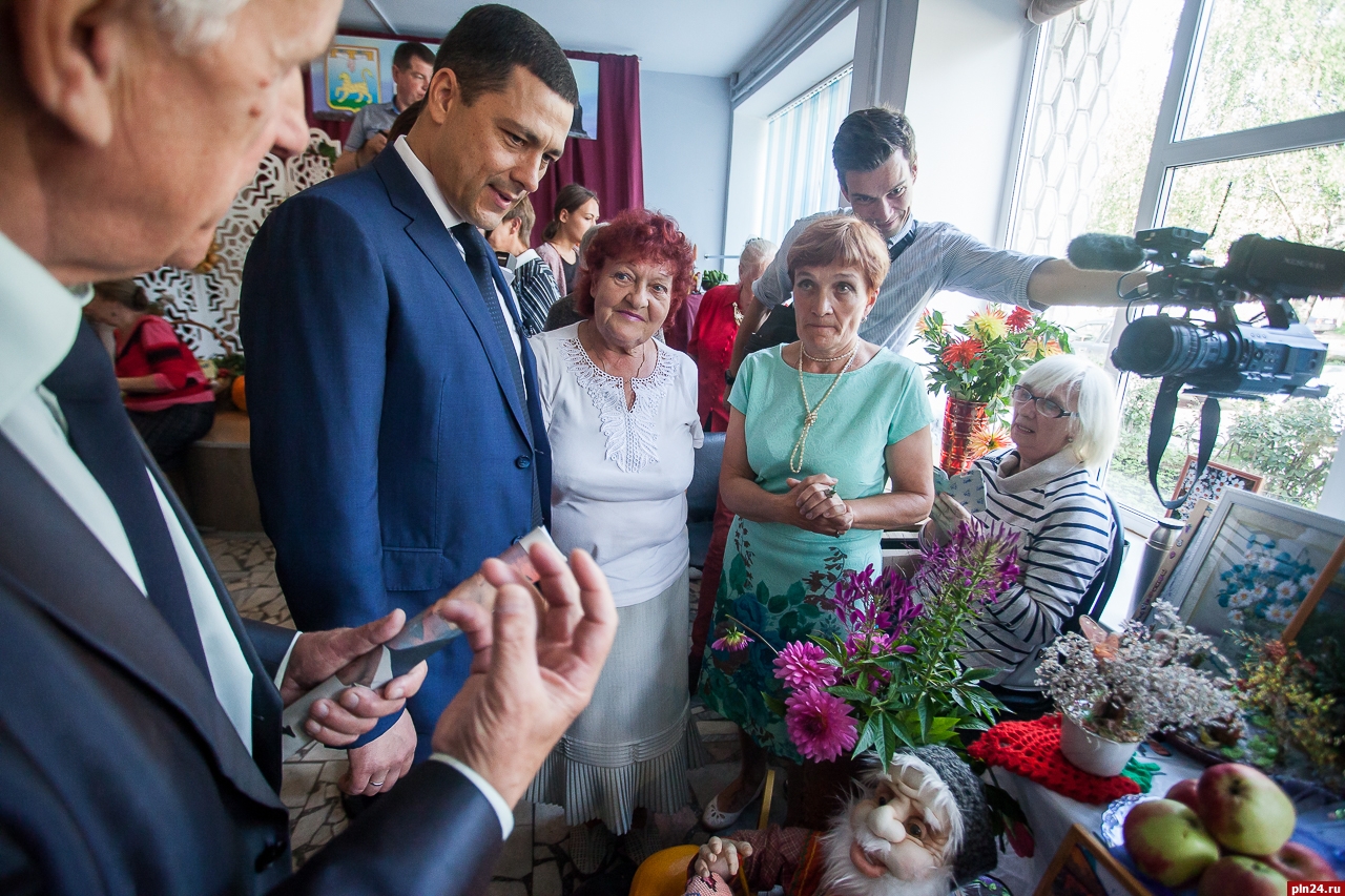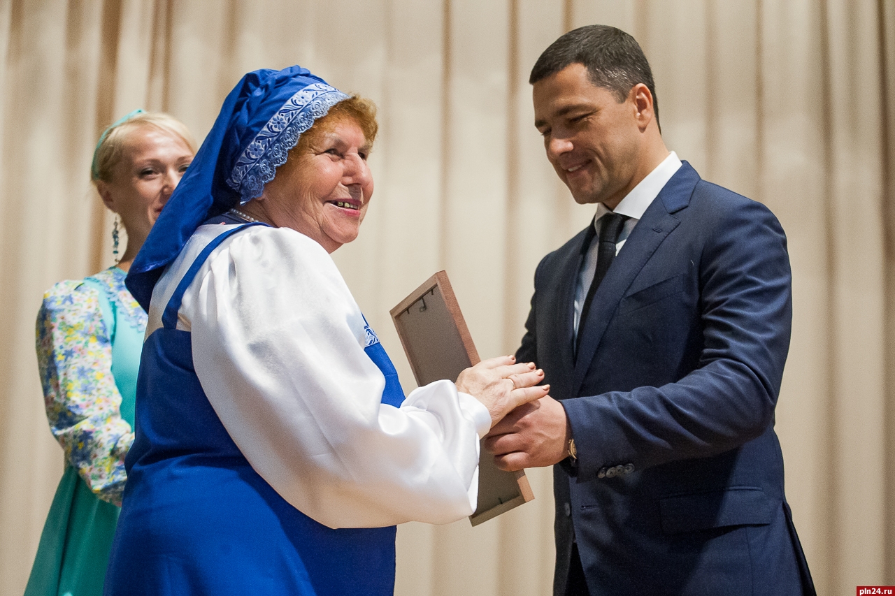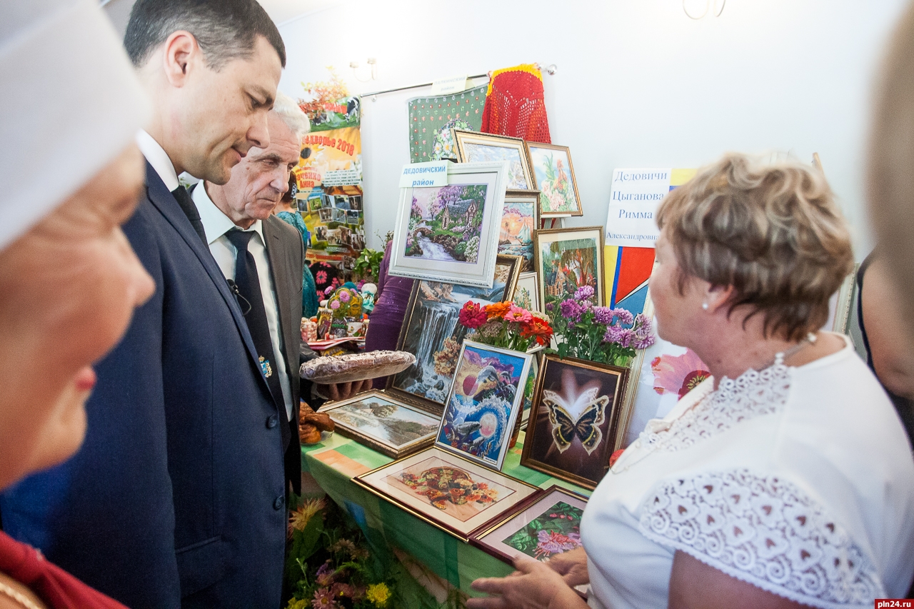 Представители Плюсского района показали Михаилу Ведерникову сувениры, сделанные своими руками. Мастерицы подарили врио губернатора набор керамической посуды. Нашлись подарки и у ветеранов Великолукского района - местный мед и домашнее вино. Врио губернатора очень приглянулись великолукские валенки со снегирями. Ведерников отметил красоту валенков и пообещал заказать их у хозяйства, отметив, что валенки будут отличным подарком гостям региона.