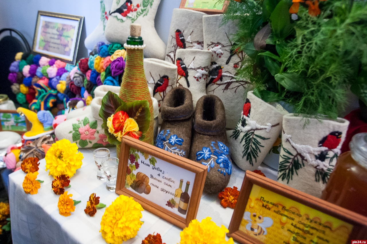 Гости из Плюсского района представили изделия народного творчества, выполненные в самых разных мастеровых техниках.