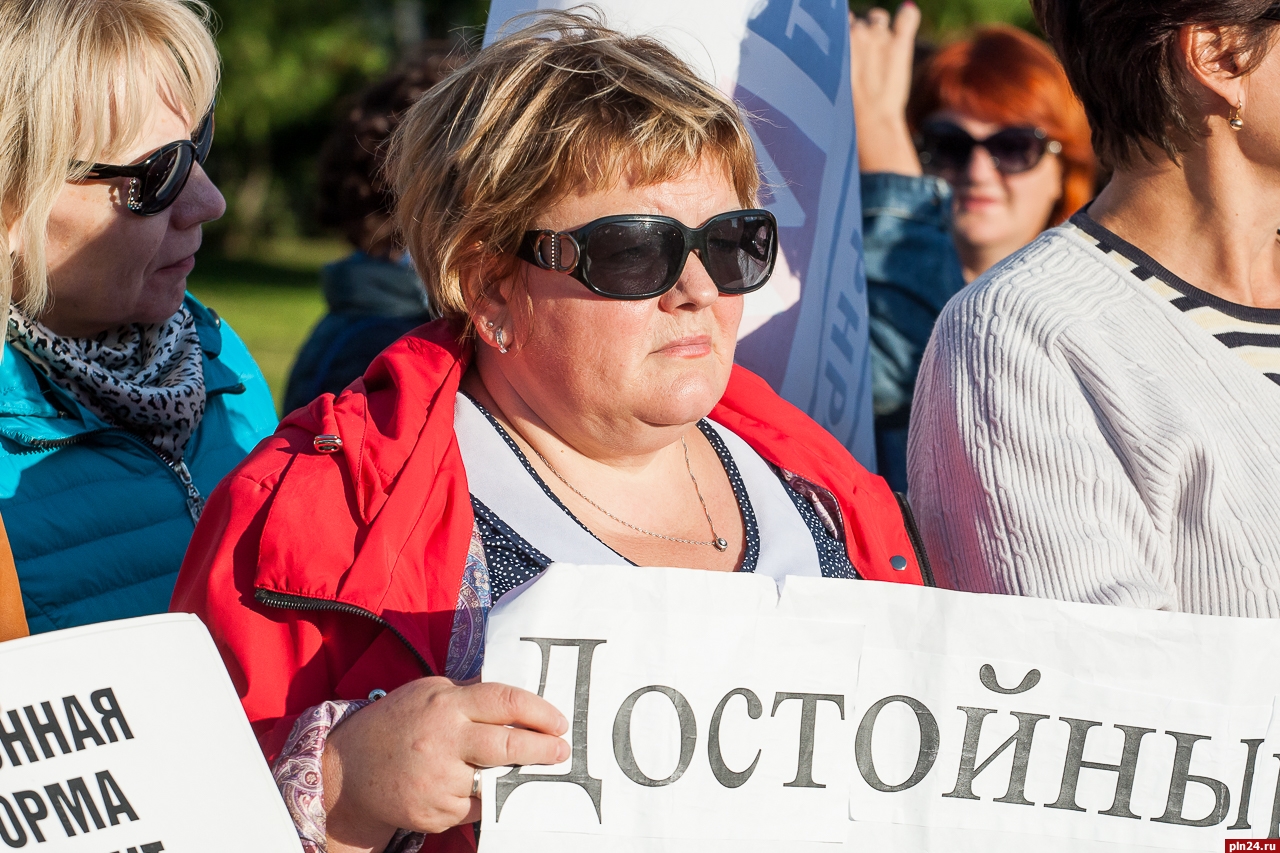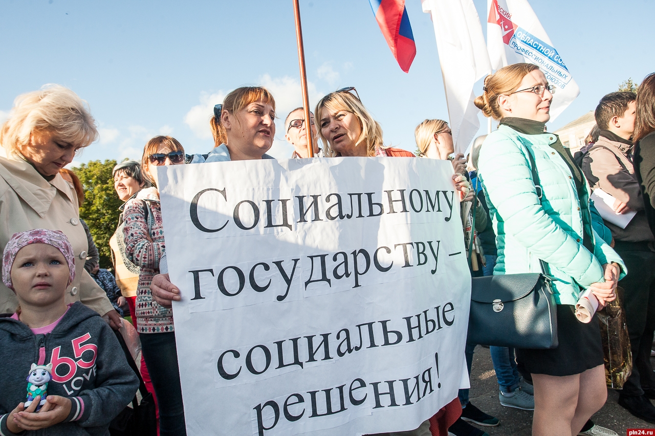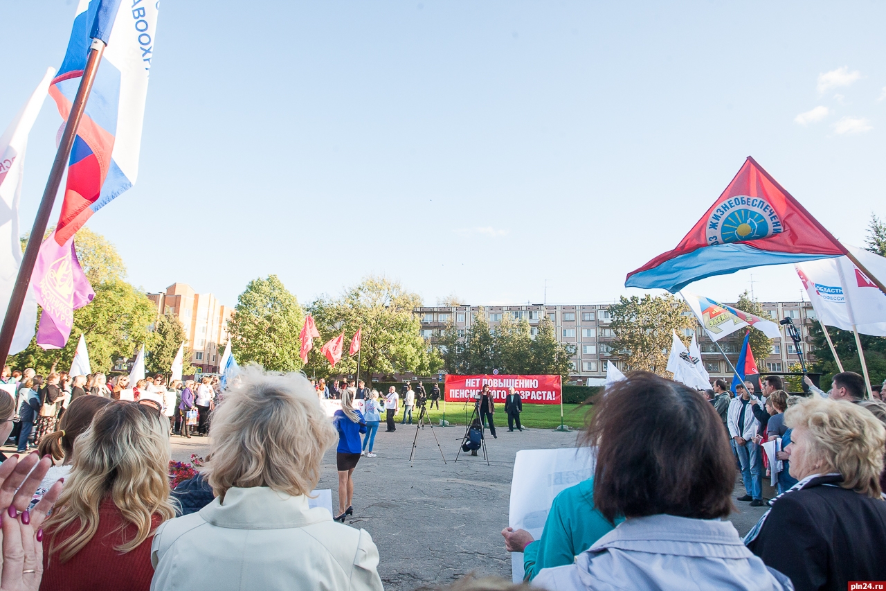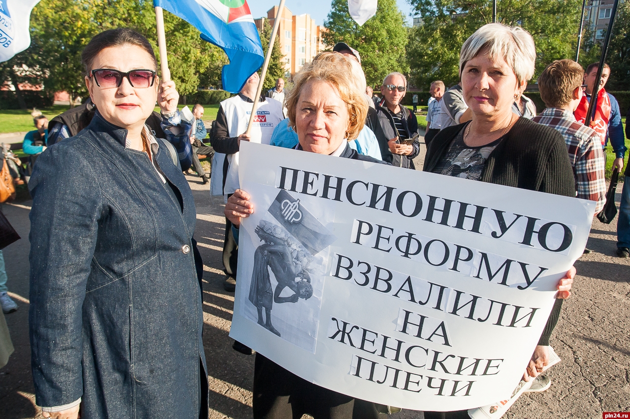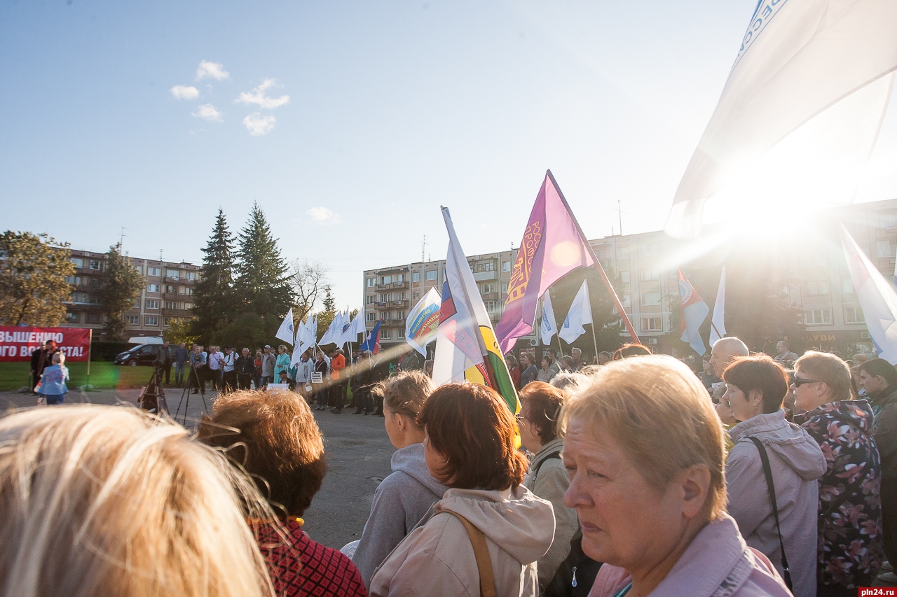 Участники профсоюзного митинга против повышения пенсионного возраста, который прошел 13 сентября в Пскове на «Четырех углах», приняли резолюцию, передает корреспондент Псковской Ленты Новостей. Текст резолюции зачитал заместитель председателя Псковского облсовпрофа Андрей Хришкевич.