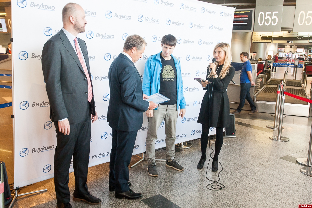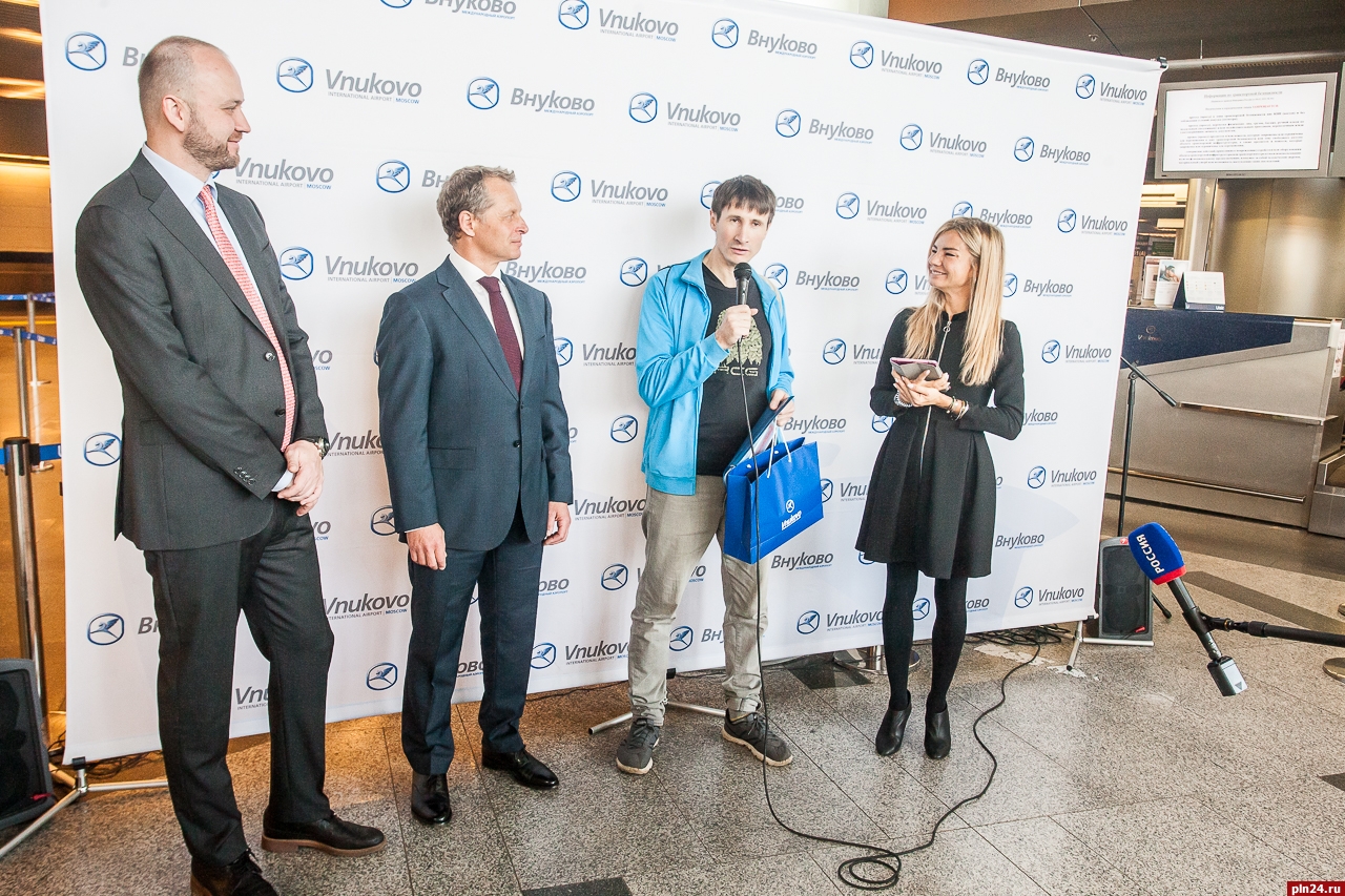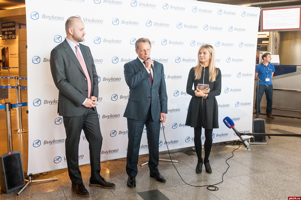 Первый авиарейс компании «Азимут» был совершен по маршруту Москва - Псков из аэропорта «Внуково» в 12.00. Перед началом регистрации пассажиров приветствовали заместитель генндиректора аэропорта Внуково Антон Кузнецов и гендиректор компании «Азимут» Павел Екжанов. Они вручили первому пассажиру авиарейса Алексею Карпову бонусный билет туда-обратно на любое направление полетов «Азимута» и пожелали приятого полета всем, кому предстояло подняться на борт воздушного судна до Пскова.