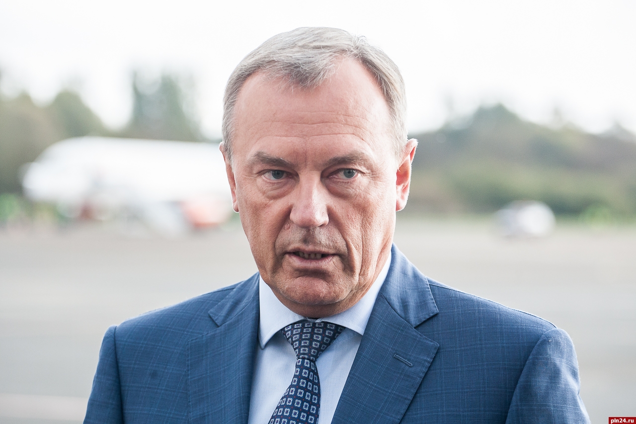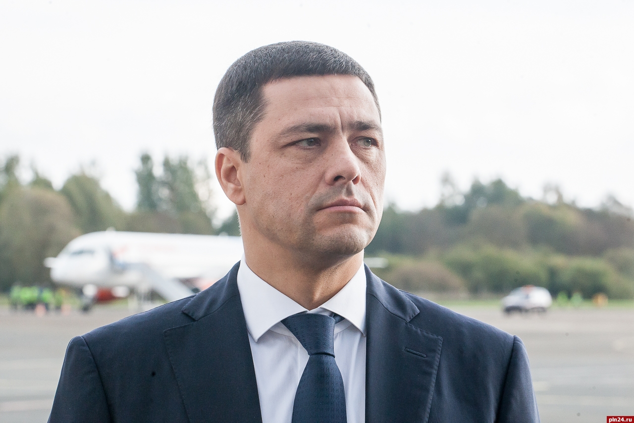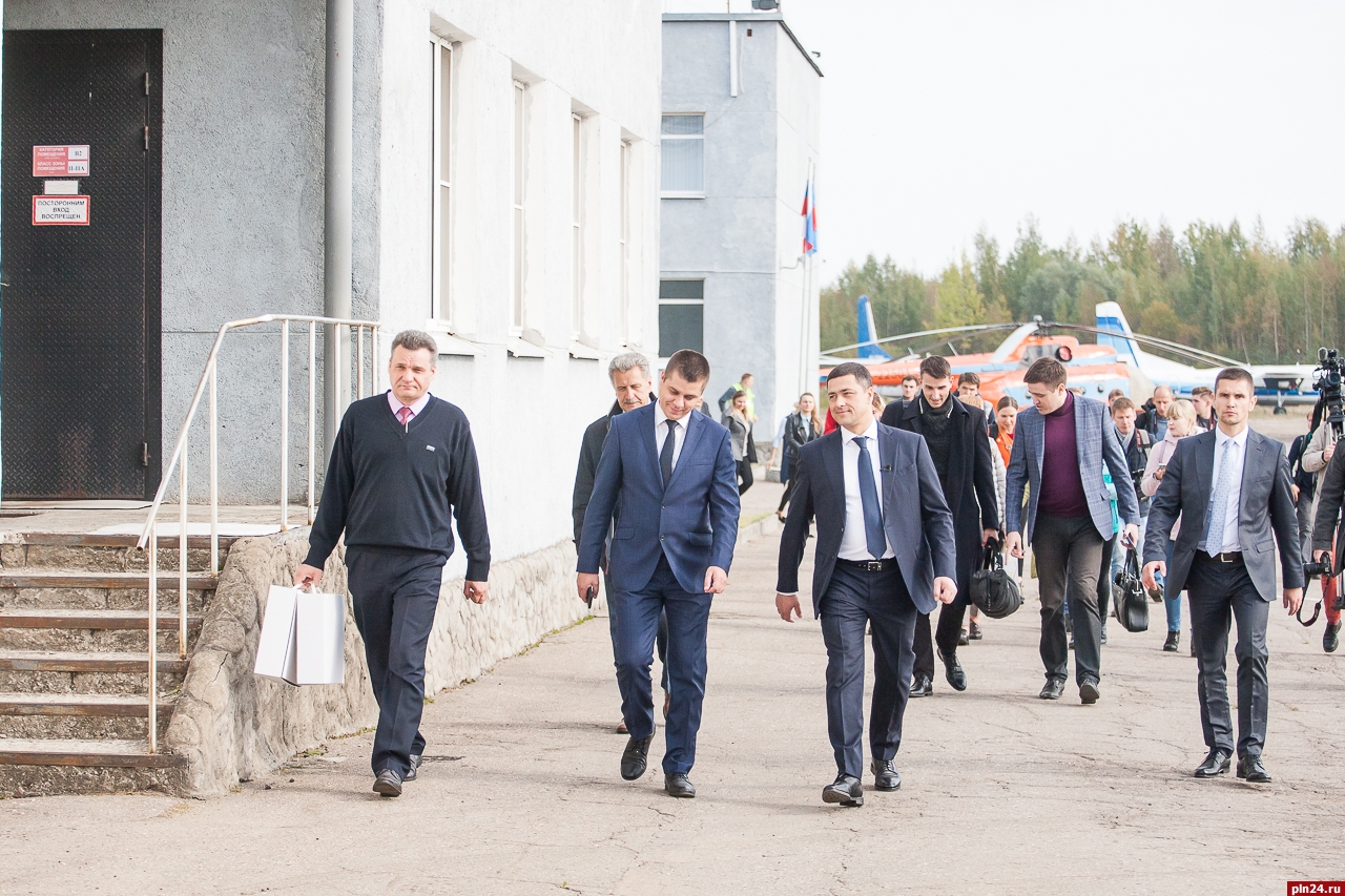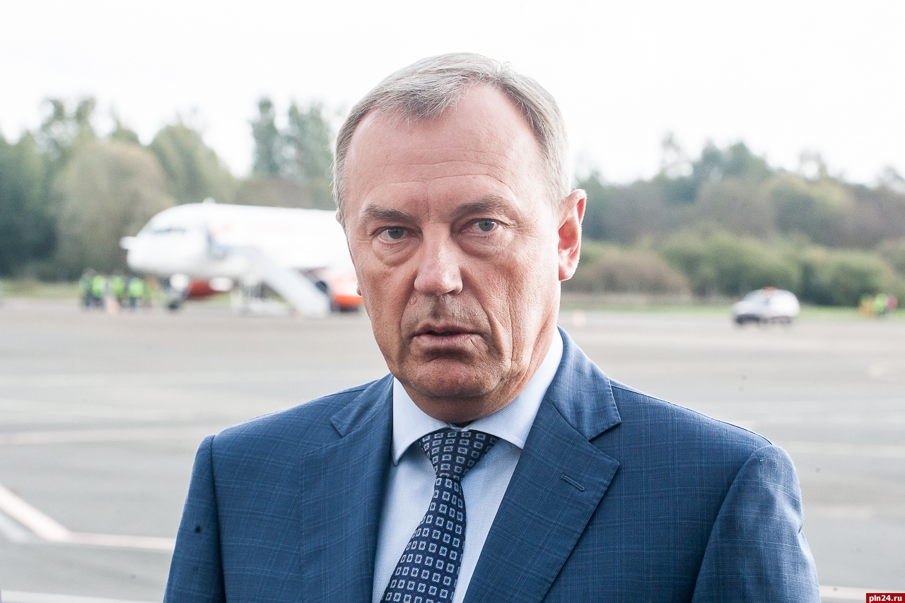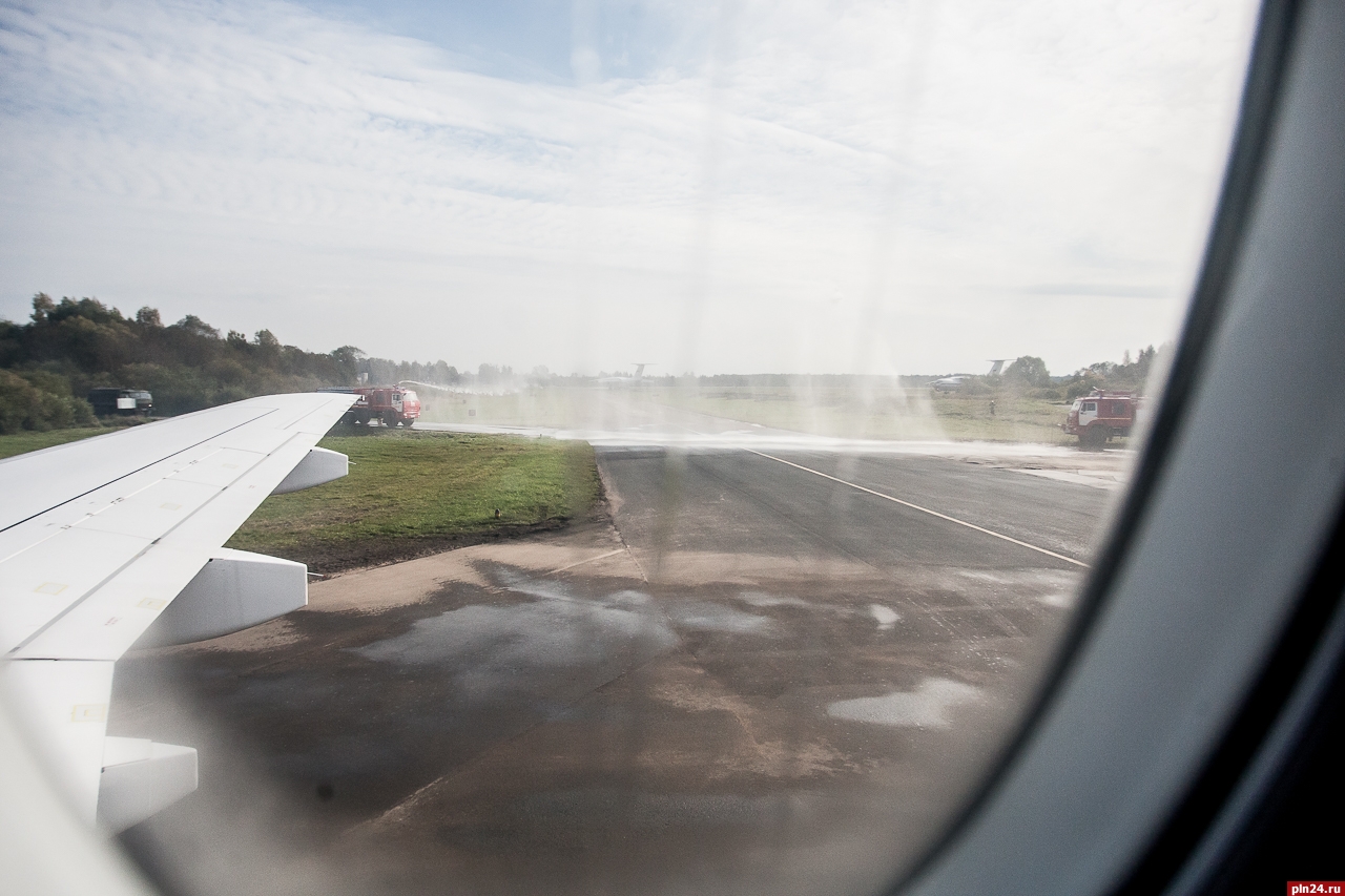 А при посадке самолета в псковском аэропорту устроили церемонию «водяная арка», за которой наблюдал губернатор Псковской области Михаил Ведерников. Есть такая традиция в гражданской авиации - когда учреждается новый регулярный рейс, и в аэропорт прилетает первый самолет этого рейса, при помощи пожарных машин над ним сооружается водяная арка. (Иногда таким же образом воздушные судна провожают на покой, но, надеюсь, это не наш случай).