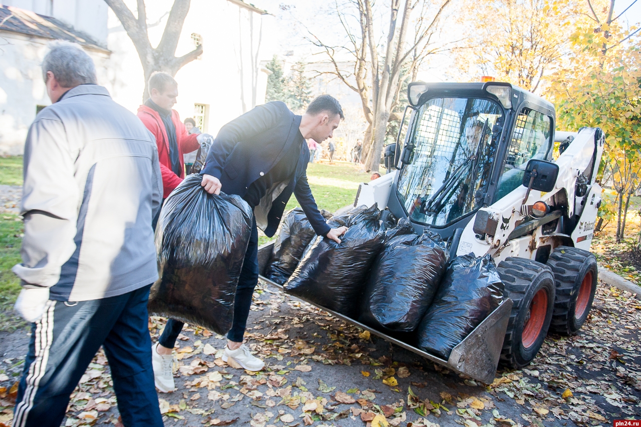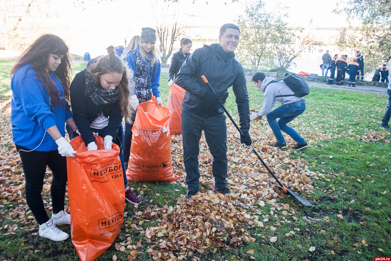 Администрация Псковской области вышла наводить порядок на берегу Великой в Пскове. Как передает корреспондент Псковской Ленты Новостей, субботник прошел сегодня, 19 октября, в рамках городского осеннего месячника по благоустройству и санитарной уборке городских территорий.