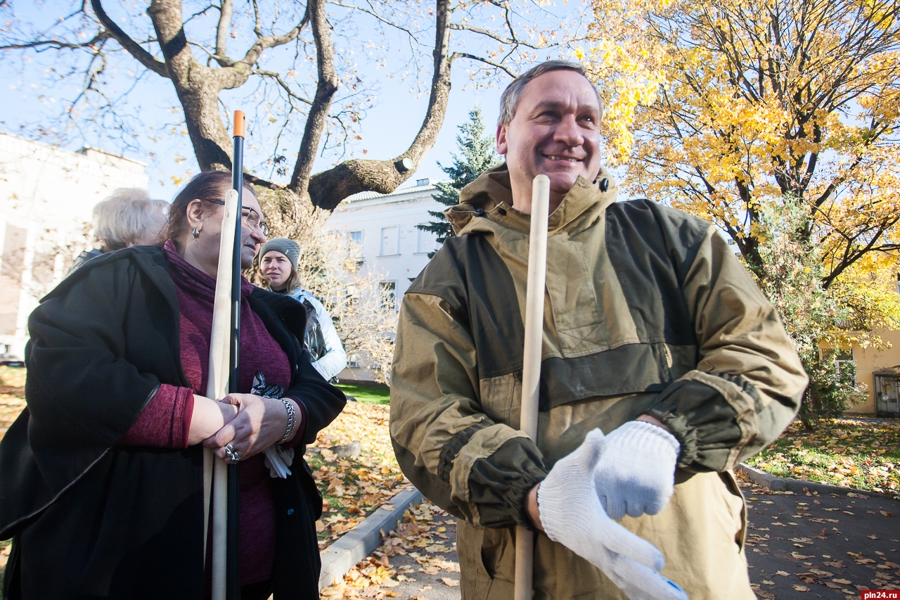 Михаил Ведерников начал с уборки опавшей листвы у церкви Успения с Парома. По его словам, сегодняшний субботник - лишняя возможность напомнить себе и друг другу, что город должен быть чистым. Также он сообщил журналистам, что считает имя княгини Ольги наиболее удачным для наименования аэропорта. «Имена разные могут быть. Наша Псковская земля, слава богу, богата историческими именами, но княгиня Ольга основную историческую роль сыграла, и не только для Псковской области, но и для России. Как говорил Владыка (митрополит Тихон), это наша добрая и мудрая бабка, которая будет нас оберегать», - заключил губернатор.