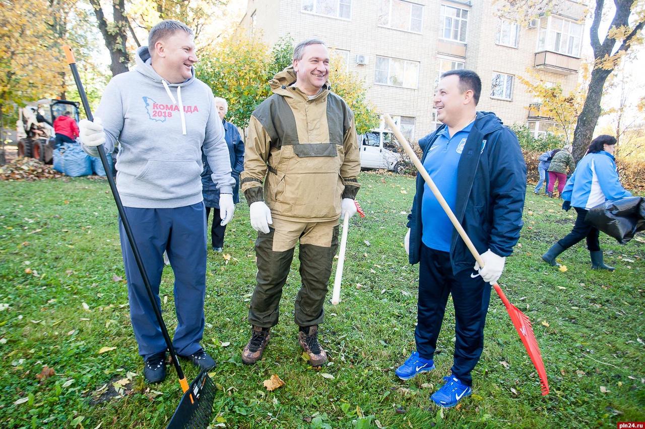 Среди участников субботника можно было увидеть губернатора региона Михаила Ведерникова, и.о. руководителя аппарата администрации Псковской области Сергея Дмитриева, и.о. председателя государственного комитета Псковской области по делам строительства и жилищно-коммунального хозяйства Сергея Грахова и других. К чиновникам администрации присоединились участники проекта «Команда 2018».