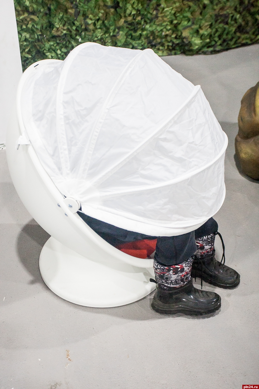 Можно даже самому почувствовать себя на пару минут маленьким вылупляющимся динозавриком, угнездившись в одном из яйцеобразных белых стульчиков.