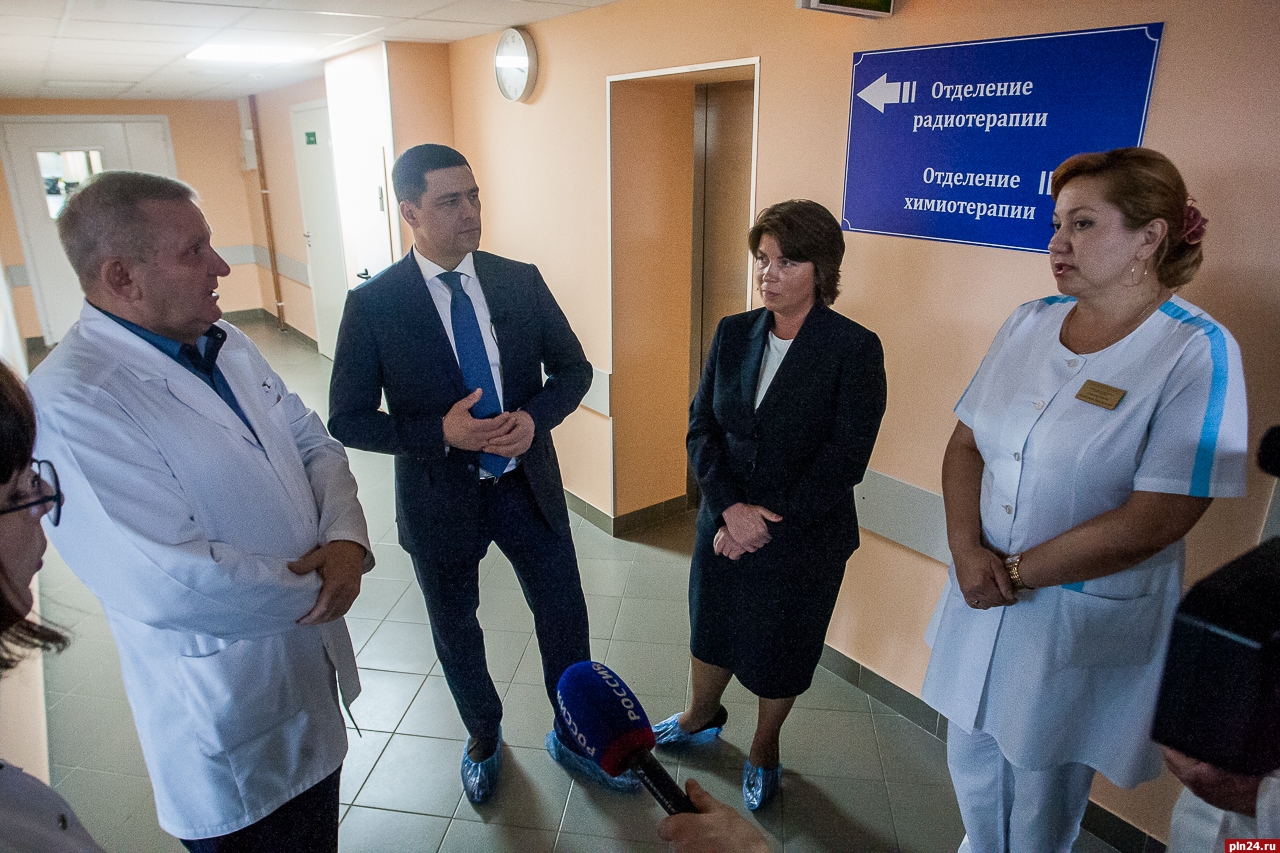 Губернатор Псковской области Михаил Ведерников в четверг, 8 ноября, вместе с новым председателем комитета по здравоохранению и фармации Мариной Гаращенко посетил региональный онкологический центр, который был введен в эксплуатацию два год назад по федеральной программе совершенствования оказания медпомощи онкобольным. Об этом Псковской Ленте Новостей сообщили в пресс-службе региональной администрации.