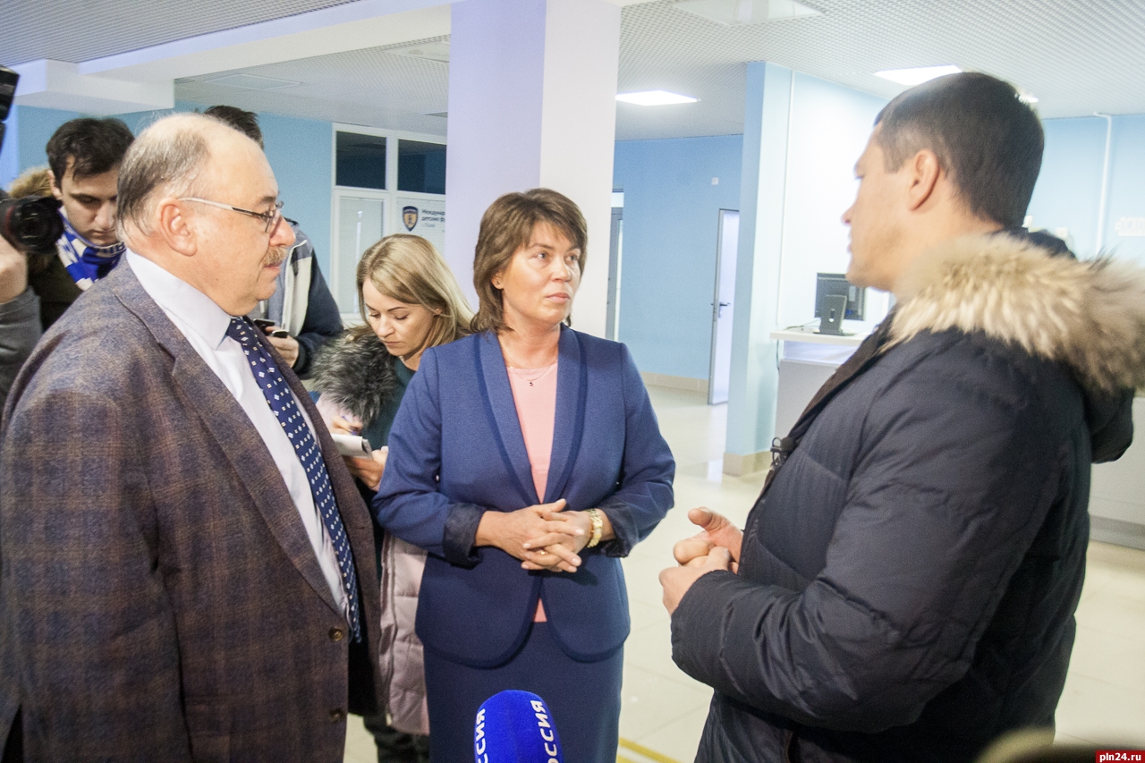 В приемке диспансера приняли участие губернатор Псковской области Михаил Ведерников, руководитель областного комитета по здравоохранению и фармации Марина Гаращенко, главный врач детской областной больницы Аркадий Гохман, директор компании-подрядчика ООО «Стройиндустрия» Анатолий Палкин.