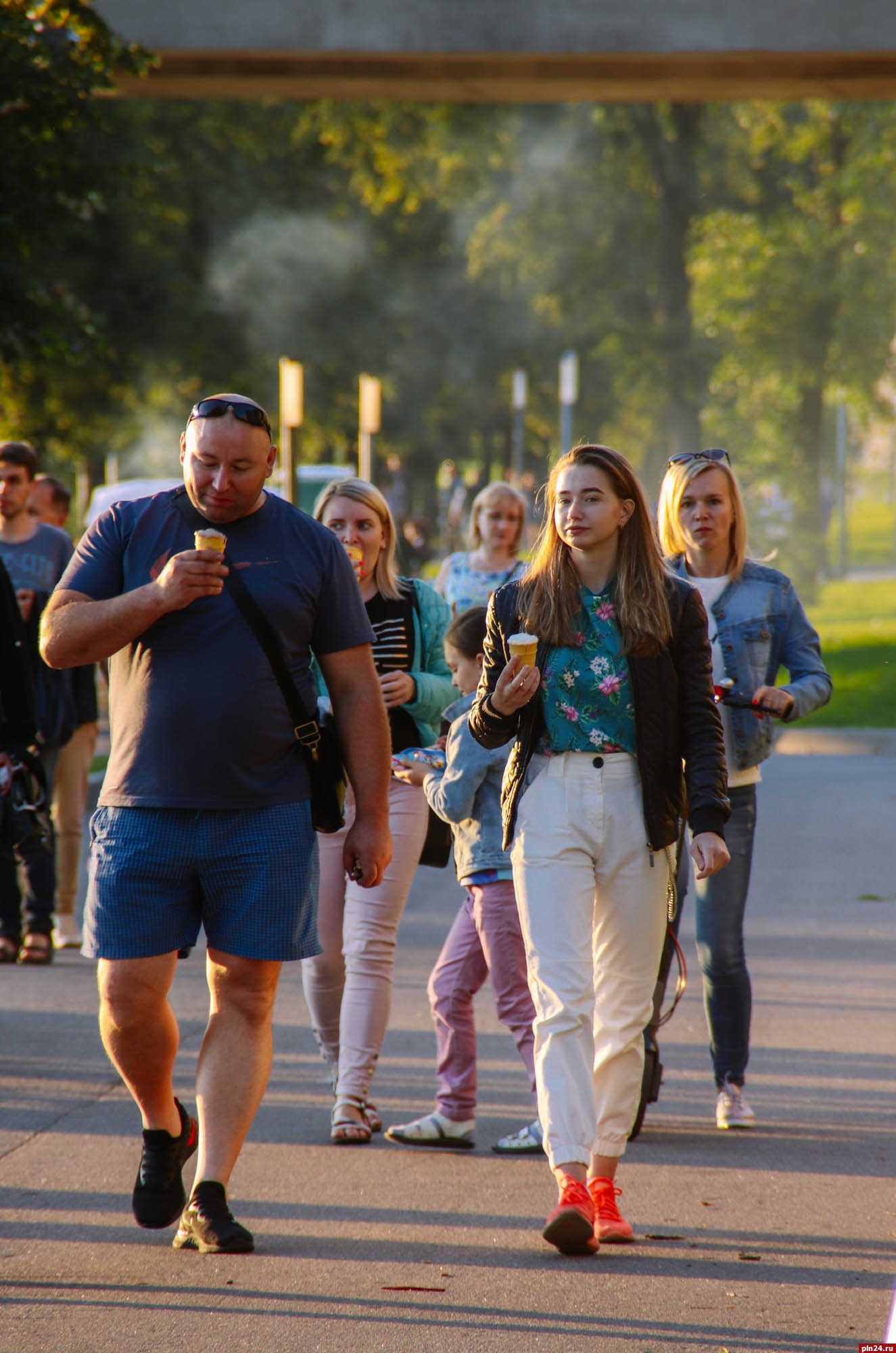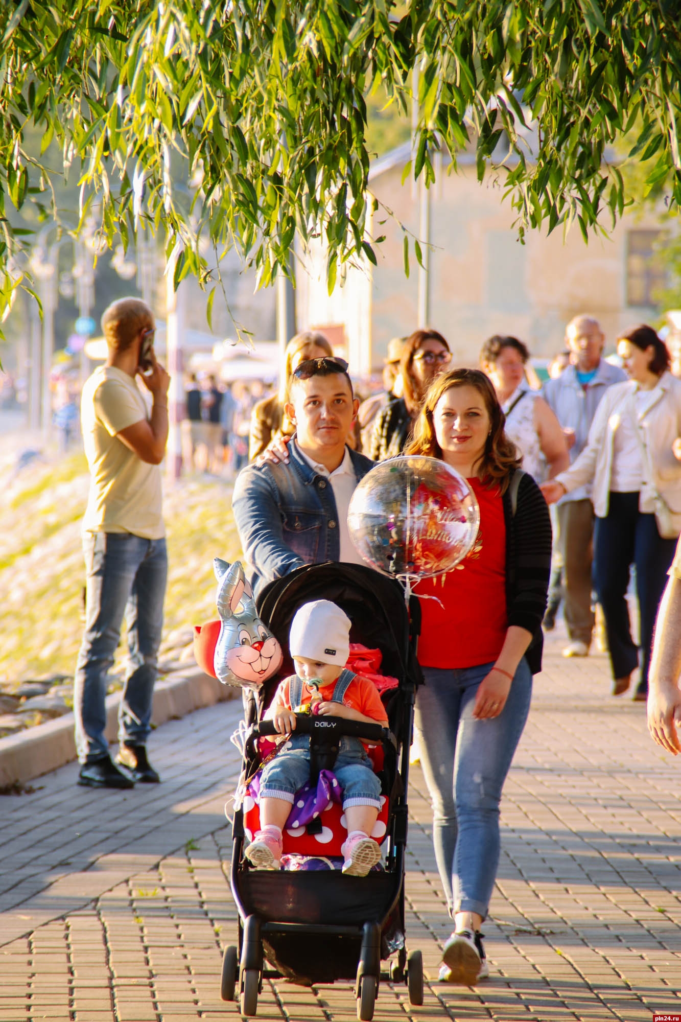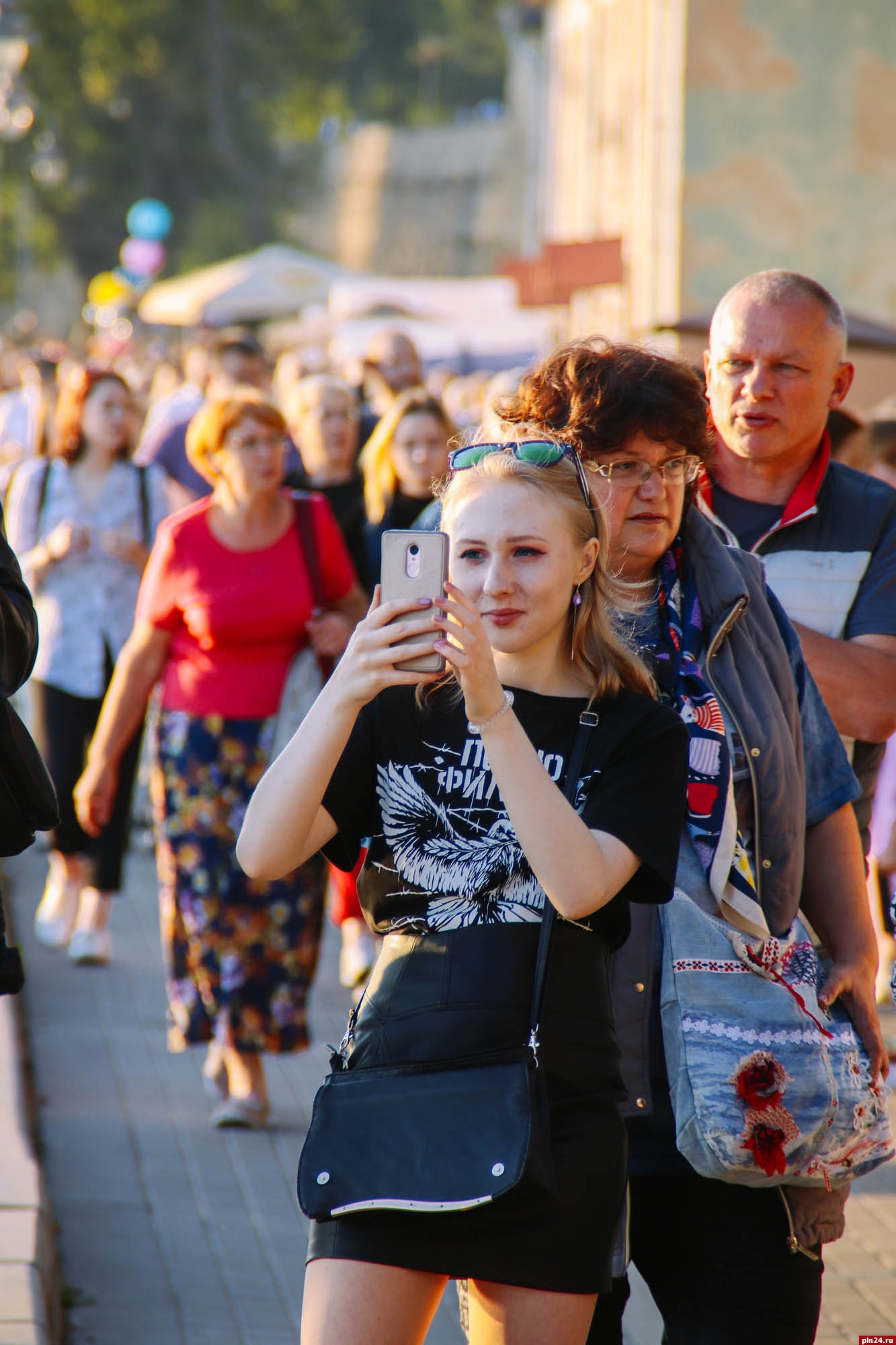 В субботний вечер псковичи продолжили отмечать 1116-ю годовщину упоминания своего города в летописи, а также - 75-ю годовщину освобождения своего города от немецко-фашистских захватчиков. Вечером 20 июля жители продолжили посещать концертные выступления, интерактивные площадки, торговые точки и многое другое.