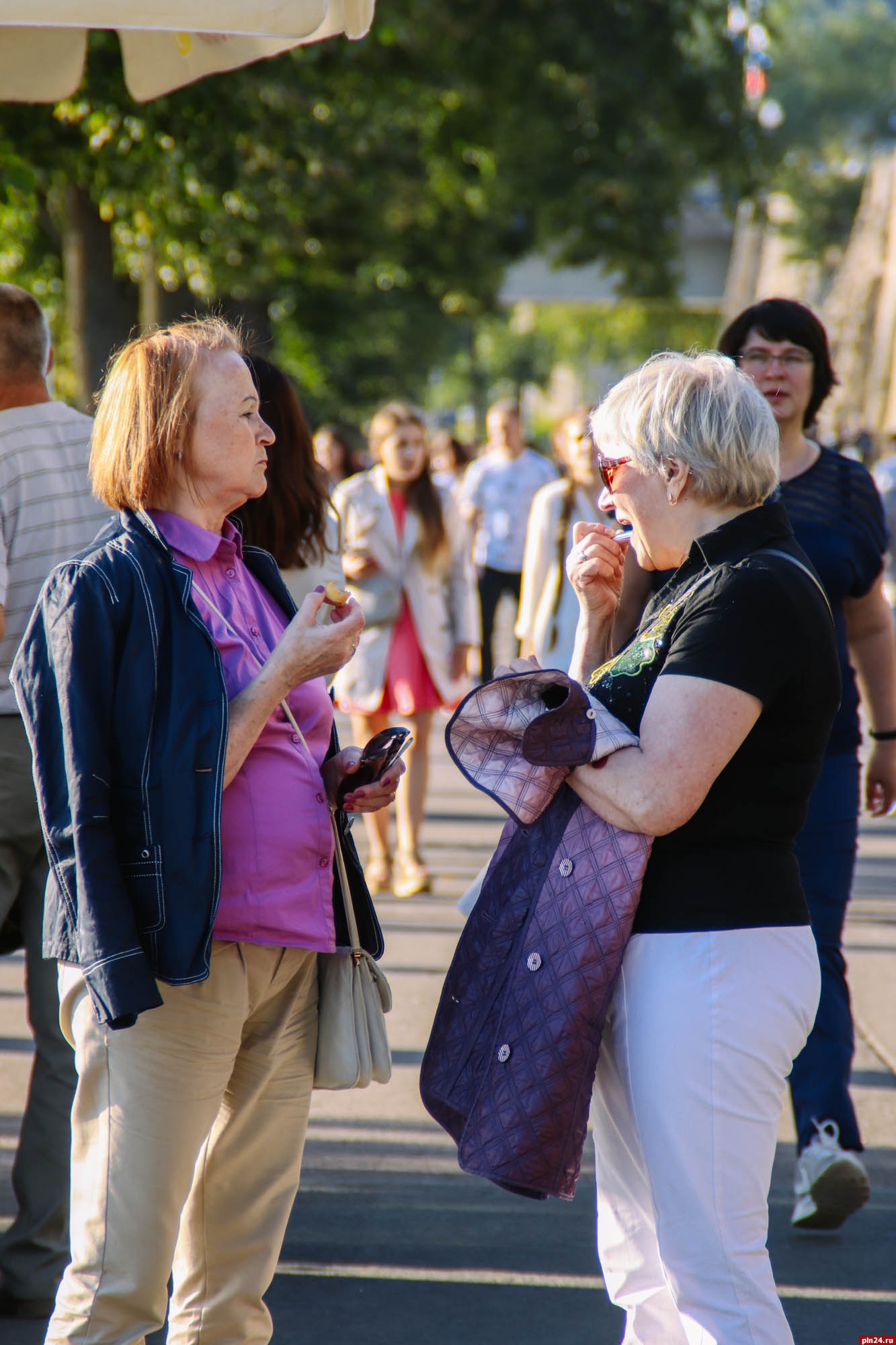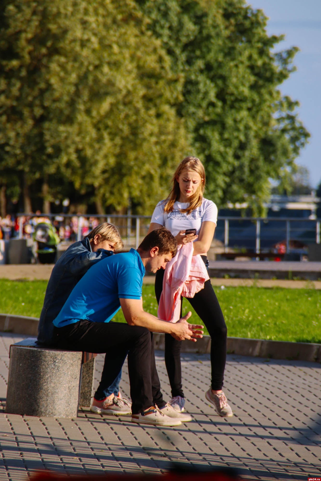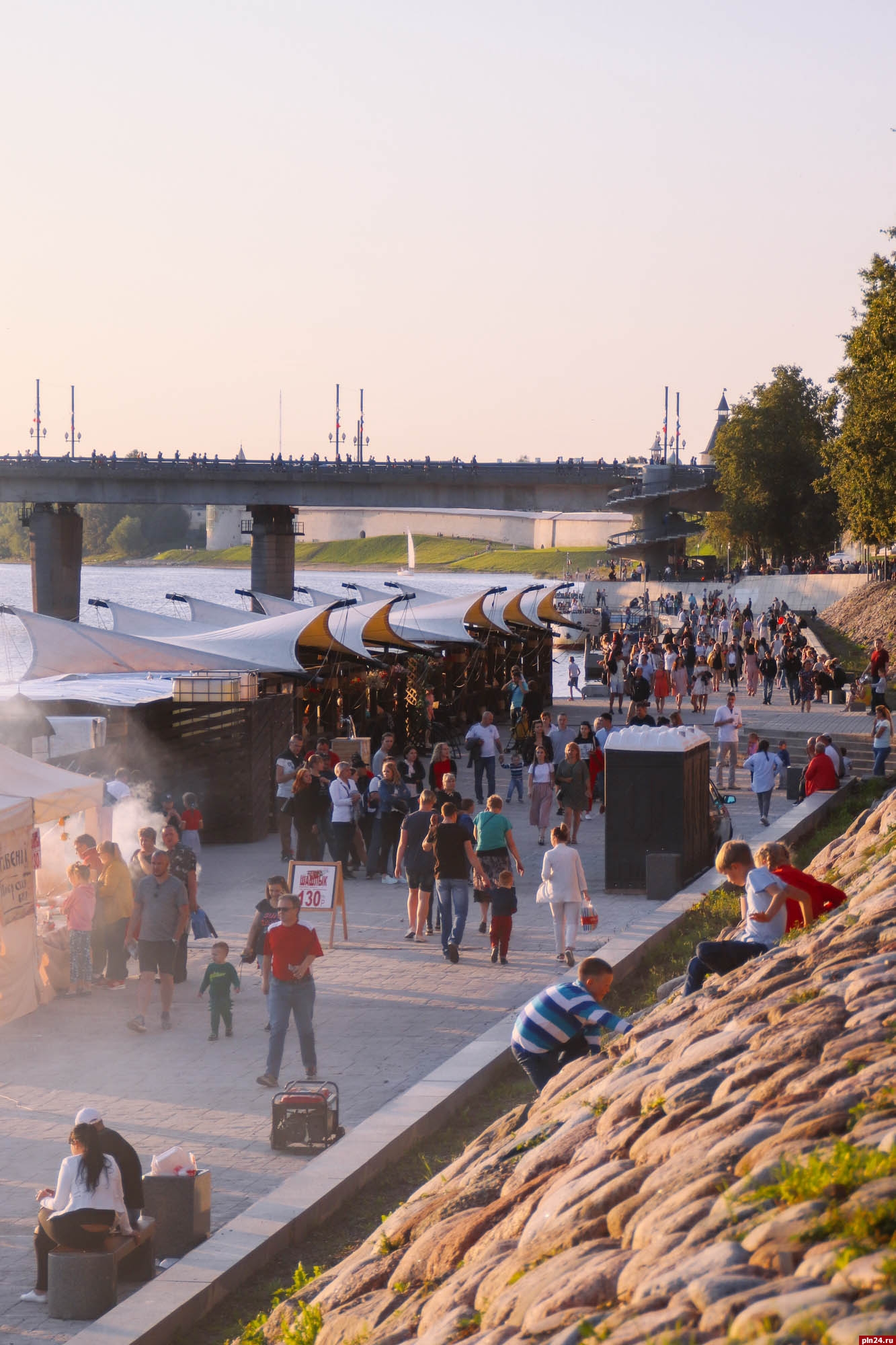 В субботний вечер псковичи продолжили отмечать 1116-ю годовщину упоминания своего города в летописи, а также - 75-ю годовщину освобождения своего города от немецко-фашистских захватчиков. Вечером 20 июля жители продолжили посещать концертные выступления, интерактивные площадки, торговые точки и многое другое.