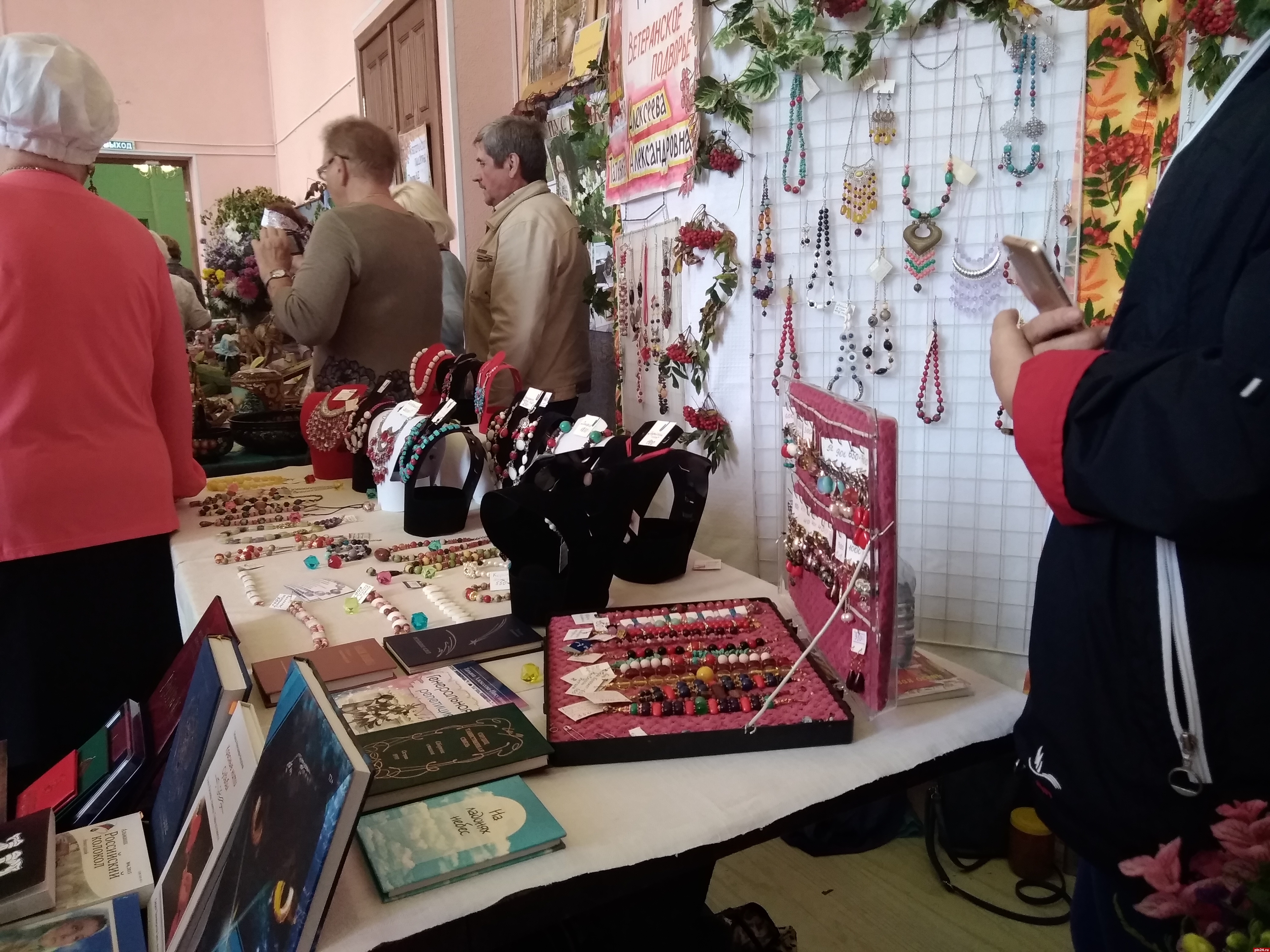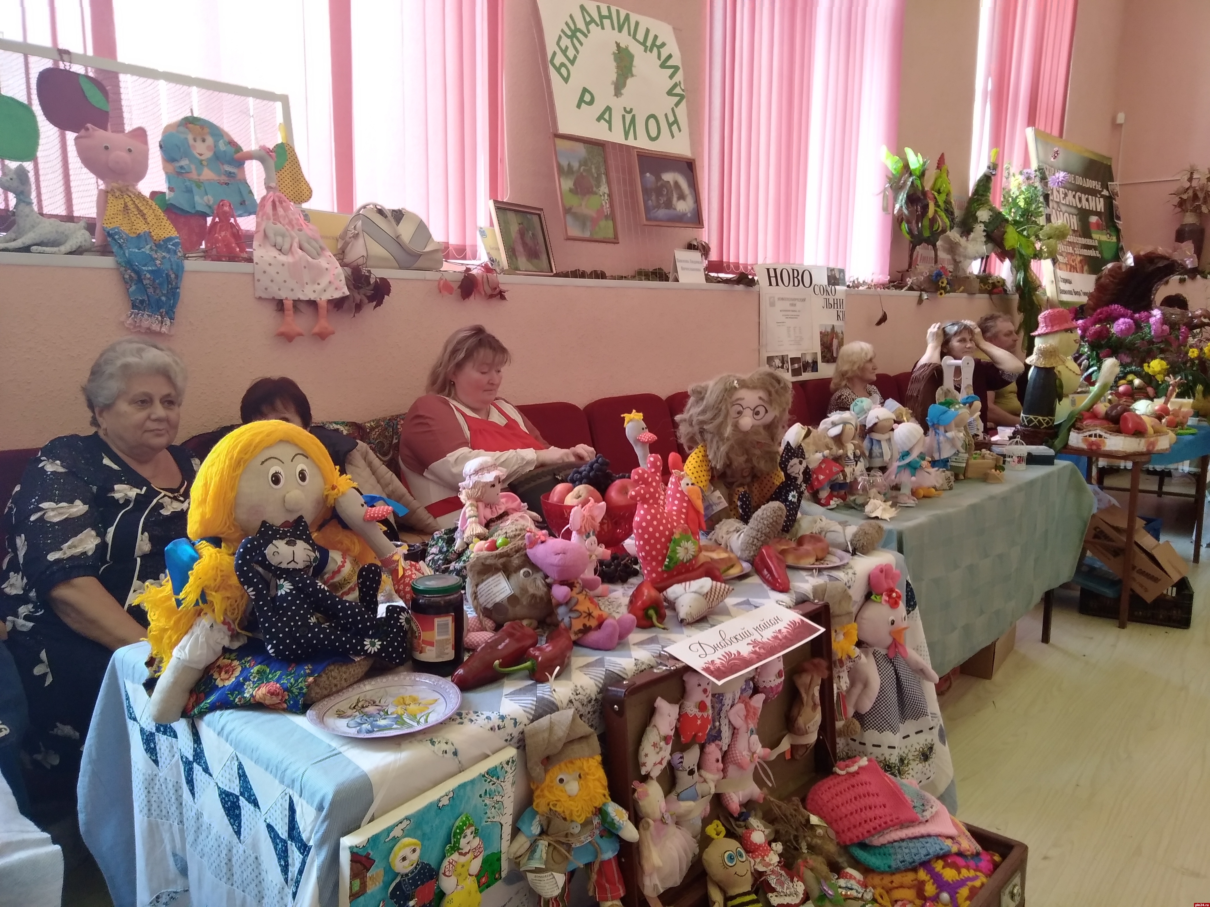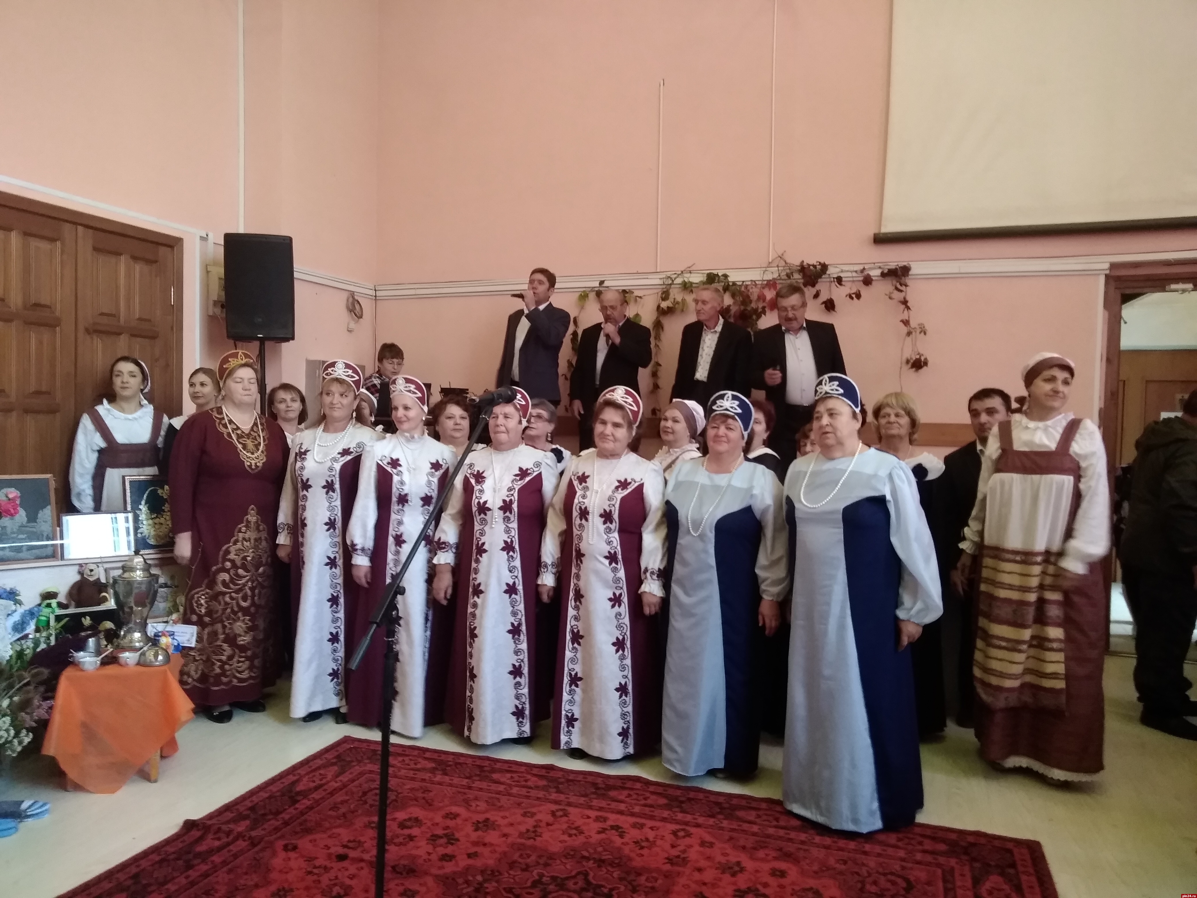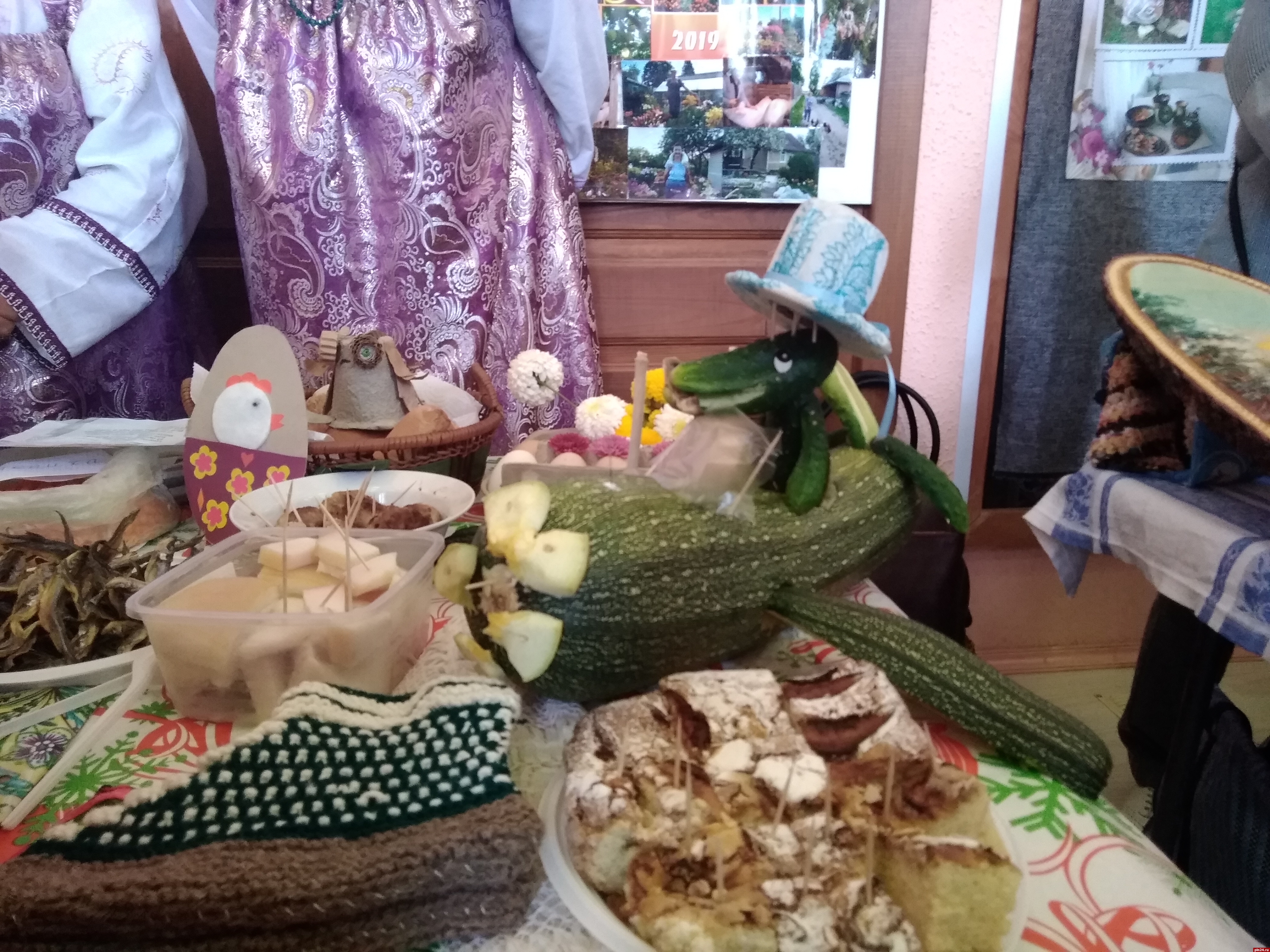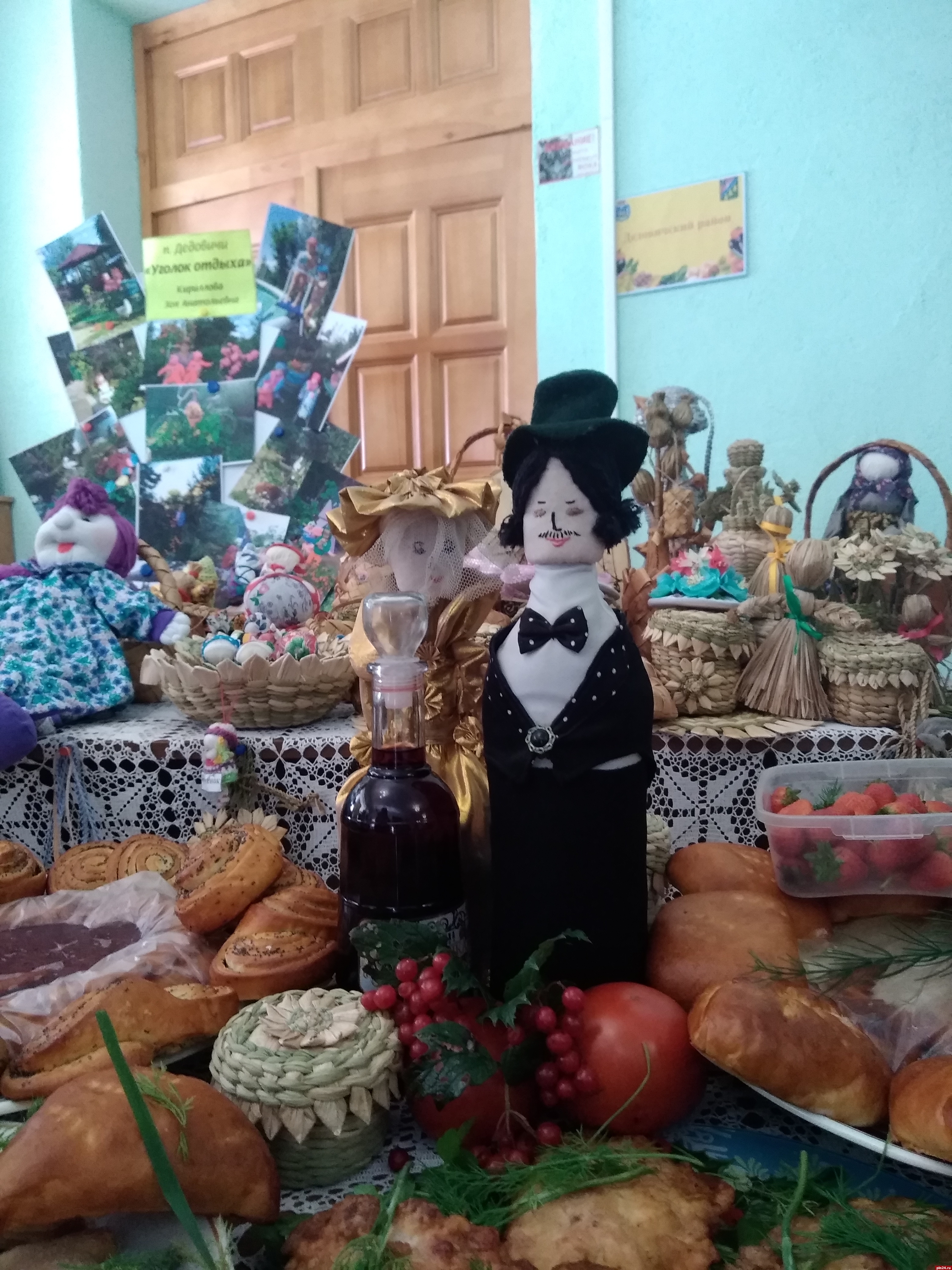 Мы делимся впечатлениями от конкурса, как вдруг из соседнего зала доносится заливистый детский голос: «Барыня ты моя, сударыня ты моя!» Девятилетняя Даша из Опочки, умница, красавица и победительница многочисленных вокальных конкурсов, помогает в презентации своей землячке, Ларисе Михайловне Федуловой, которая угощала нас пирожками и делилась секретным рецептом вкусного теста: «водичка, дрожжи, немножко песочку, немножко соли на кончике, дрожжи сухие. Без яйца - с яйцом делаются пирожки черствые. Тесто крутите, оно подымется - опускаете. Раза три опускайте. И когда оно уже лезет хорошо - начинаете раскатывать и делать начинку. У меня и с вареньем, и с грибами есть пирожки, пробуйте!».