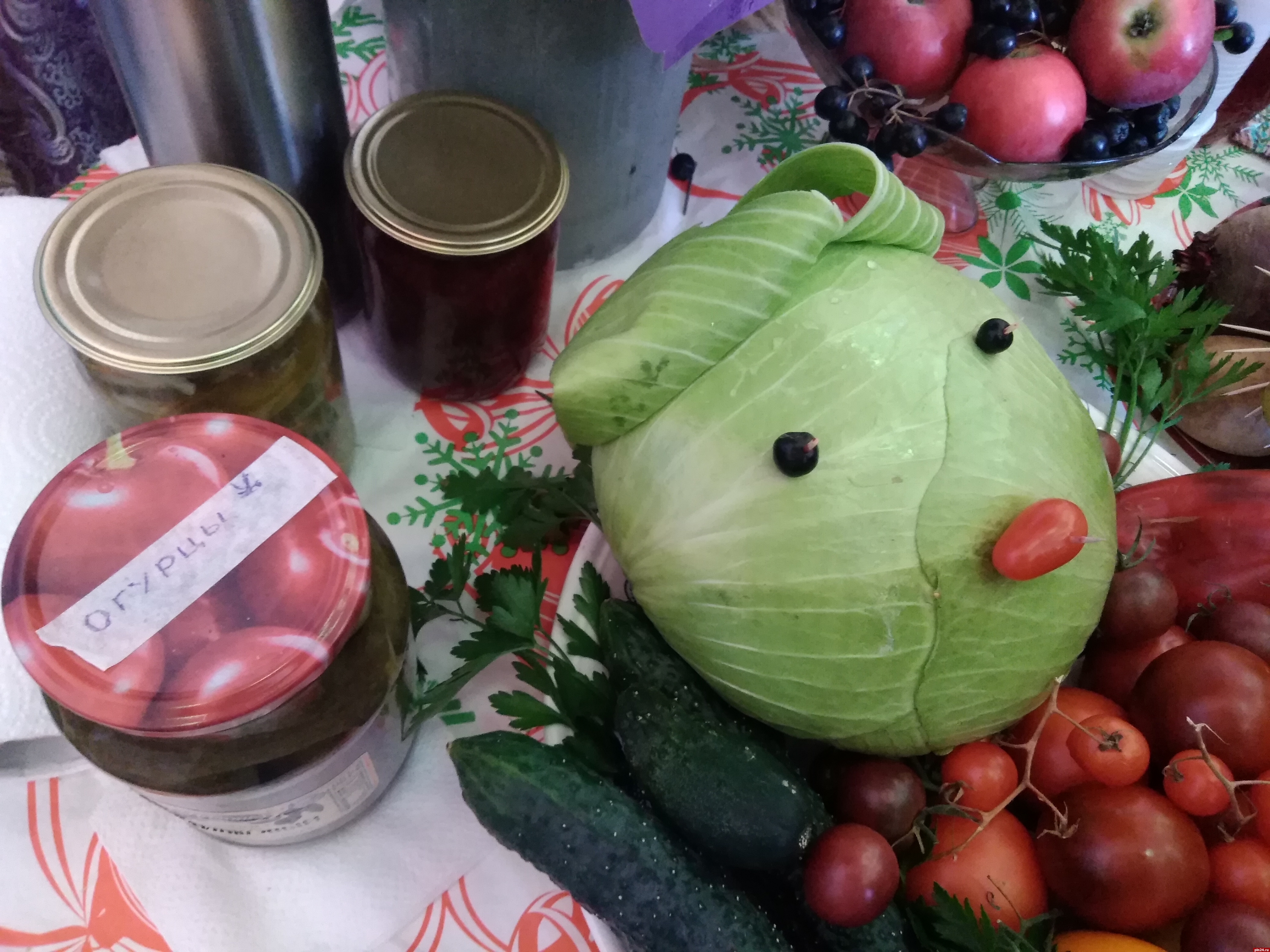 Действительно, глаза разбегаются - ведь на все можно не только смотреть, но еще и пробовать! С чего же начать? Замечаю сыр - очень его люблю, но в магазине уже не покупаю - есть его невозможно. Чтоб вы знали, какой вкусный сыр у жительницы Новосокольнического района Татьяны Николаевны Богдановой! «Две коровки у меня, нетель есть, птица всякая, яблони, сад, цветник, 50 соток огорода, высажены все сельхозкультуры, от картофеля до кукурузы и патисонов, - рассказывает нам пенсионерка. - Все, что здесь есть, все мое! Как растет? Само, конечно, передовых технологий не используем: навоз положить, и будет все хорошо! Масло, сыр, сметану, творог, масло сама делаю. Очень просто: сепаратором перегнать молочко, сметанки добавить, потом взбить, вымыть хорошо - вот и масло готово. И сыр делаю настоящий, не хуже чем в магазине».