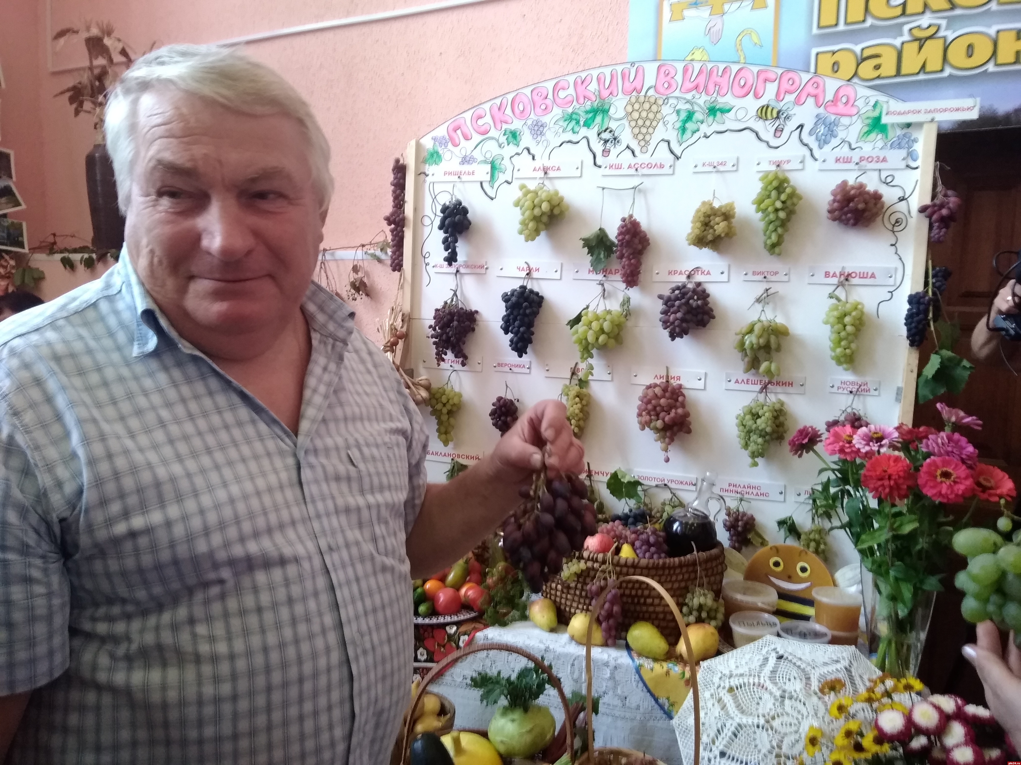 Перед выставочной витриной Анатолия Терентьева из Северика - чуть ли не давка. Все хотят попробовать его селекционный виноград. Под Псковом вырастил? Да он у него кислый небось - судачат скептики. Мы не могли не проверить: начали с сорта «Новый русский», затем перешли к дегустации «Красотки», «Чарли», киш-миш, Р80, «Сидлис» - не оторваться! Все-таки и псковское солнце на что-то способно при умелом виноградаре!