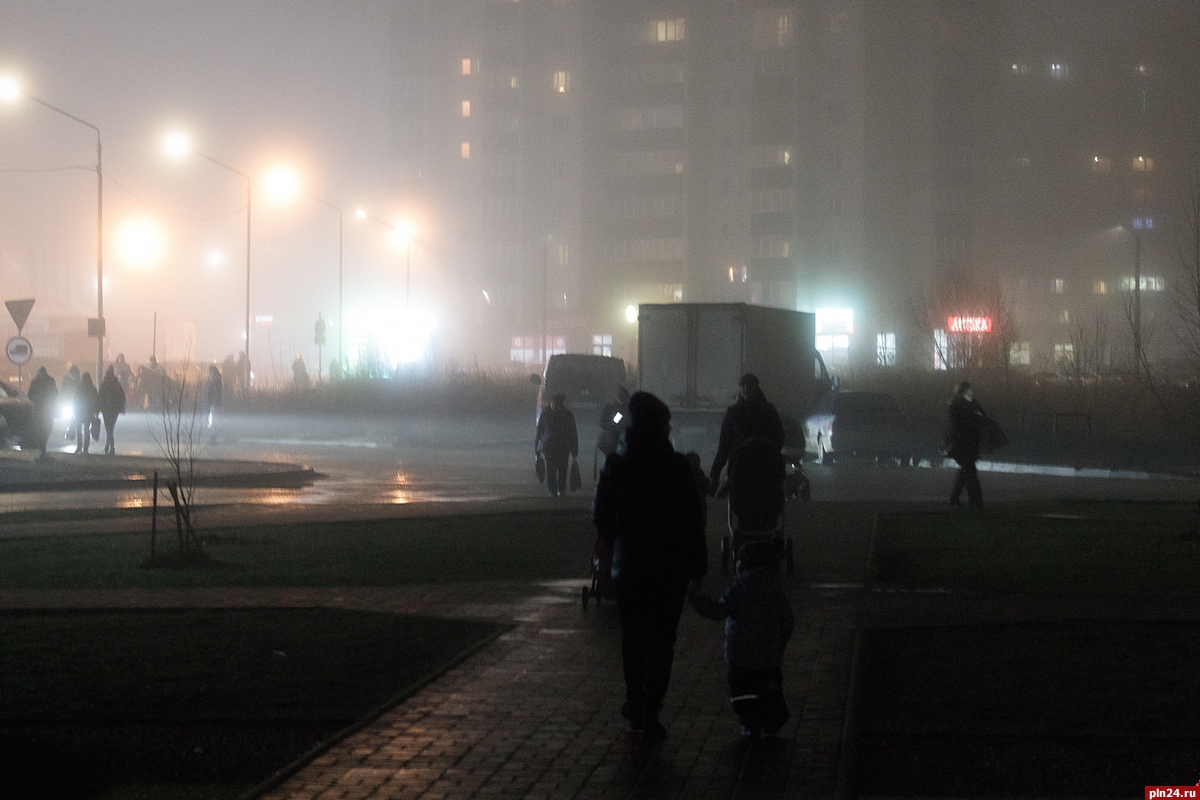 Вместо декабрьских морозов - плюс пять. Вместо снега - туман и дождь. Сюрпризы погоды и предновогодний Псков - в фоторепортаже Вадима Боченкова.