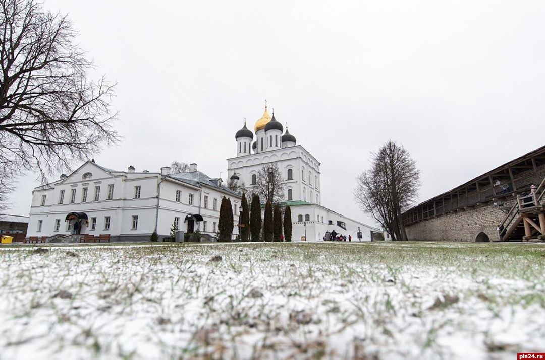 Губернатор Псковской области Михаил Ведерников опубликовал фото Троицкого собора в своем Instagram, отметив, что рабочие будни в 2020 году пришли быстрее снега.