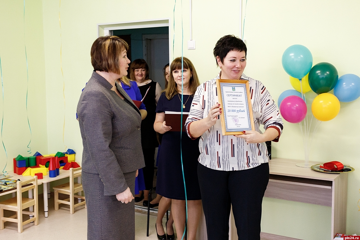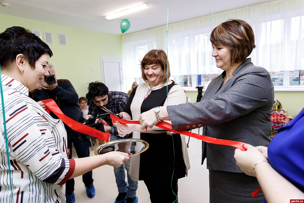 Глава Псковского района Наталья Федорова и директор Тямшанской гимназии, структурным подразделением которой является детский сад «Золотой ключик», Светлана Шестак перерезали символическую красную ленту. Затем все гости смогли осмотреть игровую и спальню, приготовленную для детей.