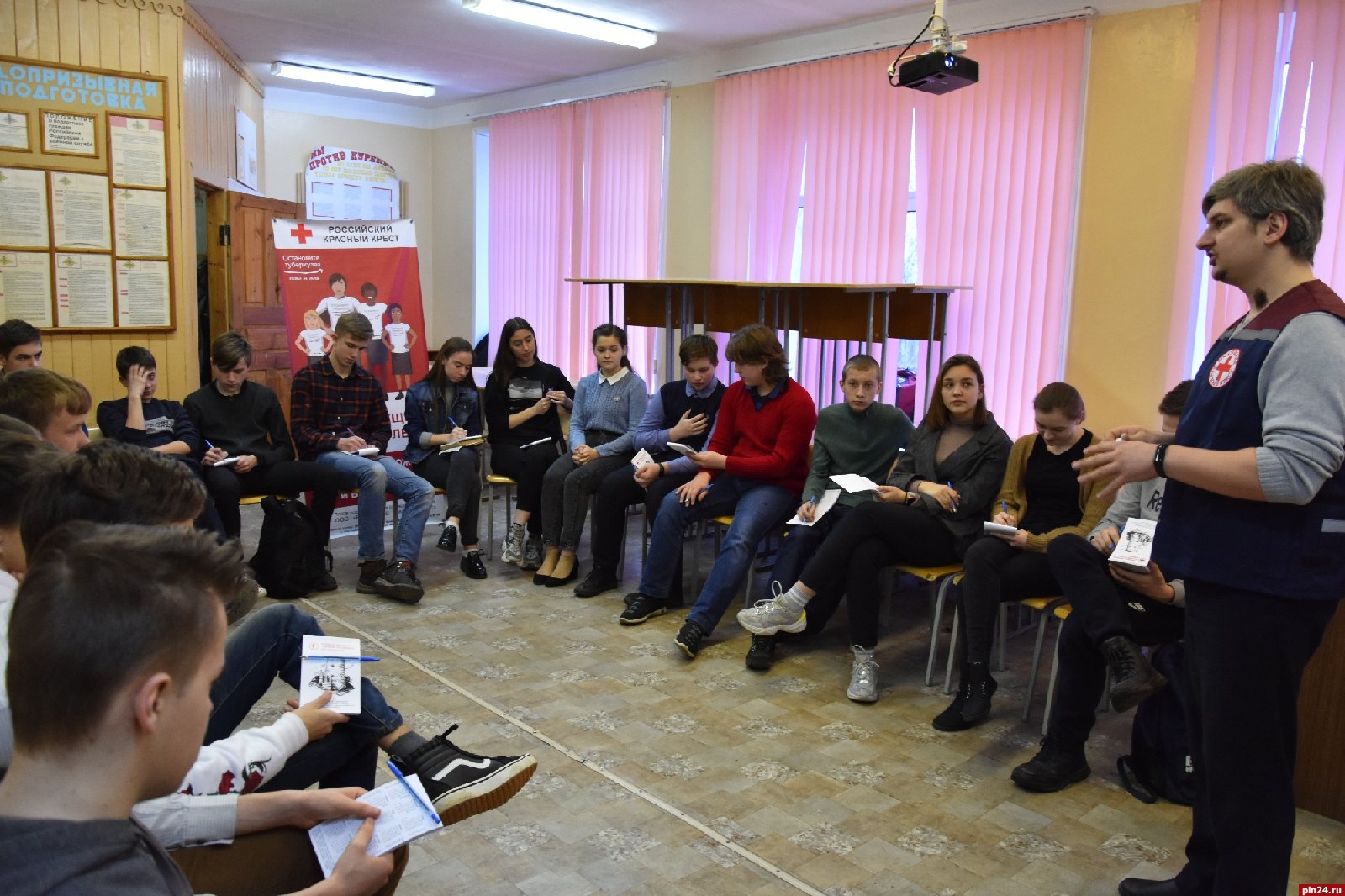 На очередной встрече со старшеклассниками МБОУ «Пустошкинский центр образования», изъявившим желание вести профилактическую работу, были представлены тематические разработки занятий по темам «Здоровый образ жизни» и «Мы за жизнь без туберкулеза». Вместе со слушателями сотрудники Псковского Красного Креста детально разобрали план проведения будущих занятий с младшими школьниками. В помощь лекторам-добровольцам были предложены презентации и компьютерные игры для закрепления пройденных тем.