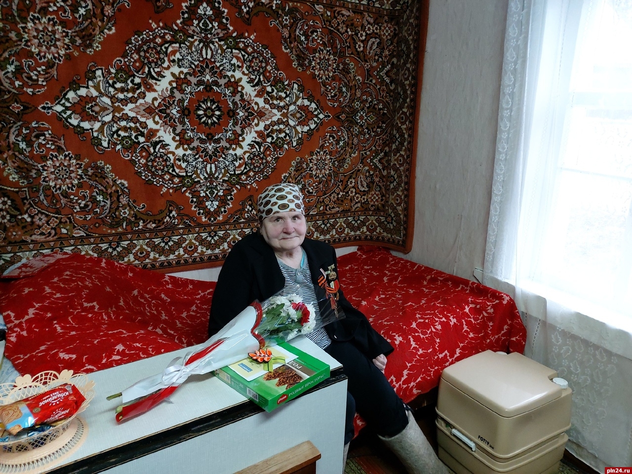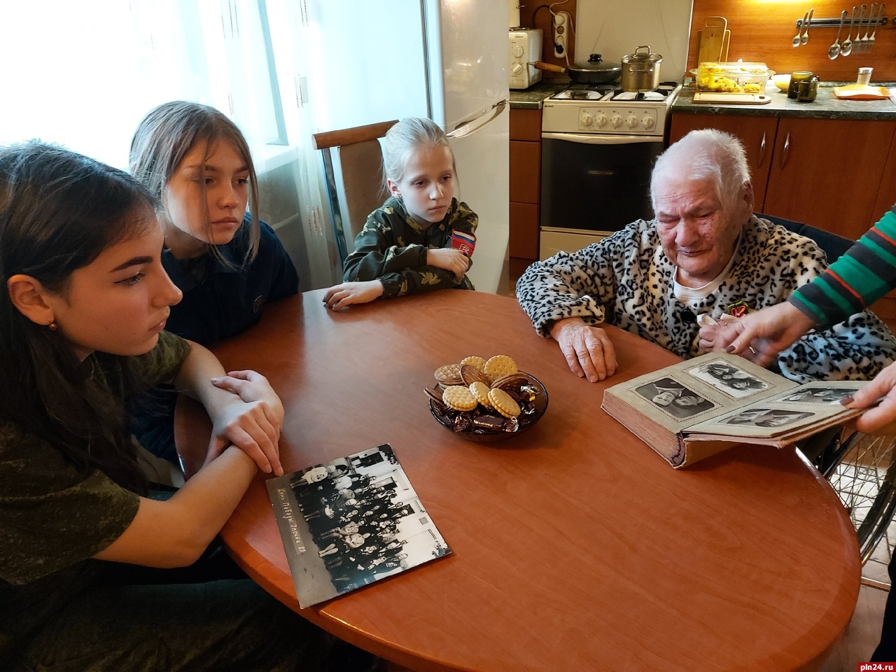 Ребята побывали в гостях у Валентины Алешиной, уроженки Опочецкого района. В годы блокады с 1941 по 1944 она служила в военном госпитале на базе больницы им. И.И. Мечникова города Ленинграда. С 1944 года работала в детском саду Кировского завода. Награждена медалью «За оборону Ленинграда».