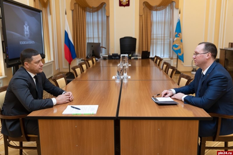 Губернатор Псковской области Михаил Ведерников в понедельник, 27 января, провел рабочую встречу с руководителем регионального Управления Федерального казначейства Дмитрием Губиным.