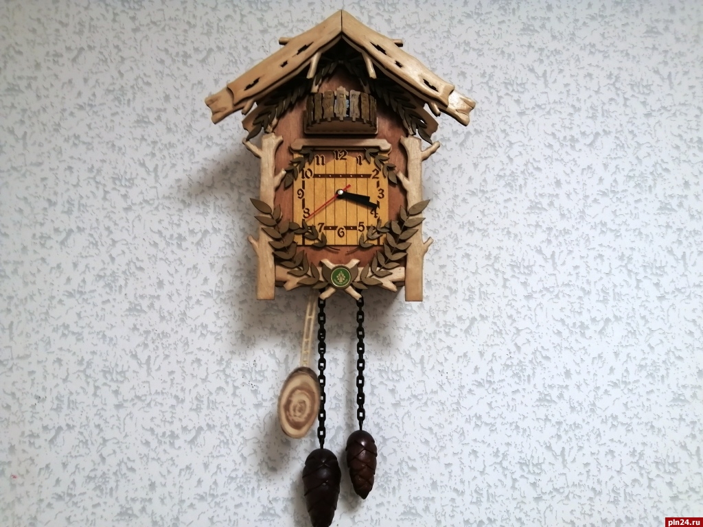 В исправительной колонии №6 УФСИН России по Псковской области освоен новый вид продукции по изготовлению товаров широкого потребления - оригинальные настенные часы из дерева сказочной тематики с колеблющимся маятником и гирьками в форме кедровых шишек, изготовленных из дерева с применением технологий на лазерном станке.