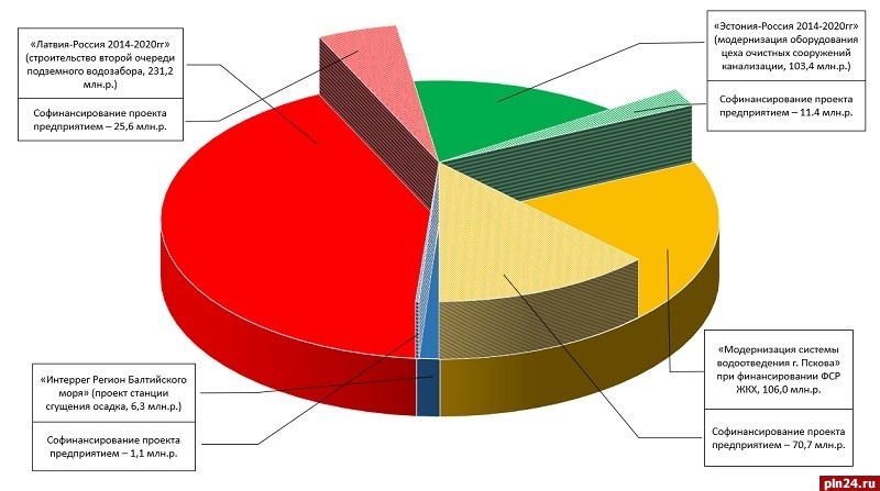 Всего по проектам МП Пскова «Горводоканал» привлекло более 5 миллионов евро (около 350 миллионов рублей) грантовых инвестиций, направленных на повышение качества предоставляемых услуг водоснабжения и очистки сточных вод.