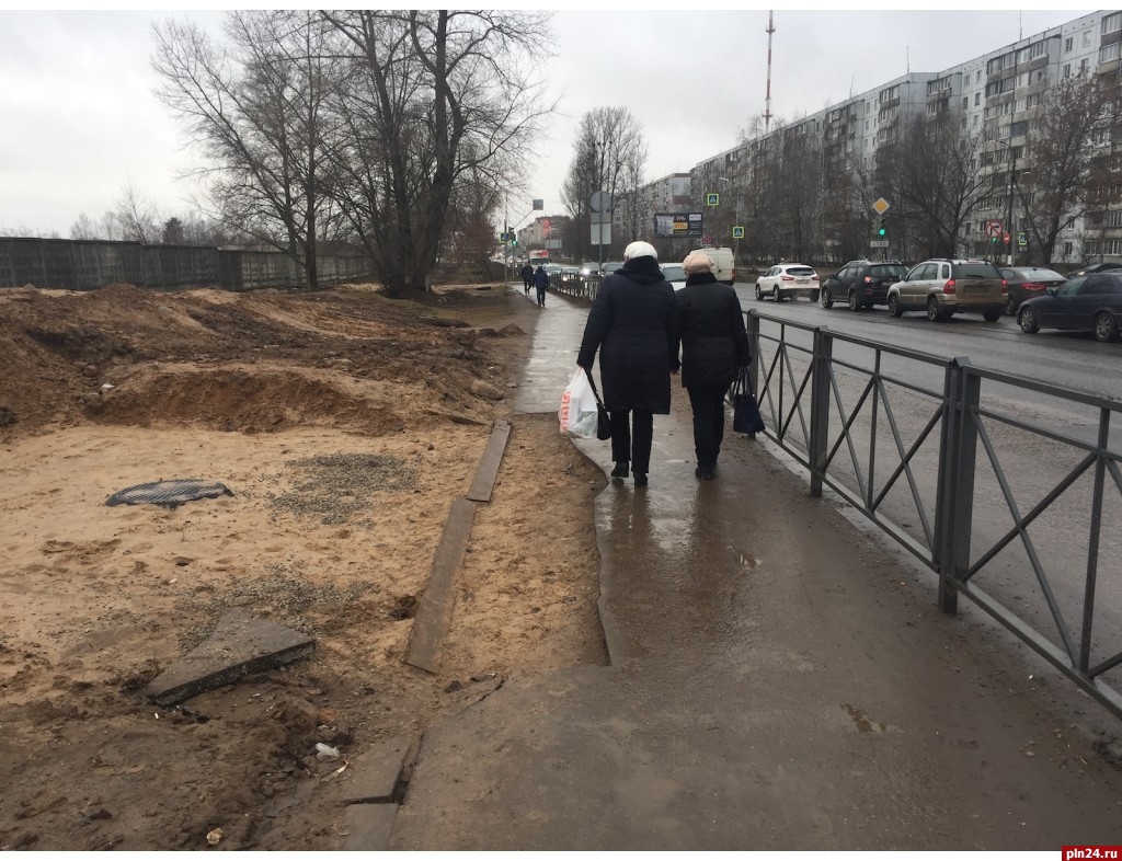 Издевательством над пешеходами назвал активист движения «Убитые дороги» Максим Пушкин последствия ремонта коллектора напротив дома № 57 по Рижскому проспекту, который закончился почти месяц назад. Свои замечания и предложения он озвучил на сайте губернатор60.рф.