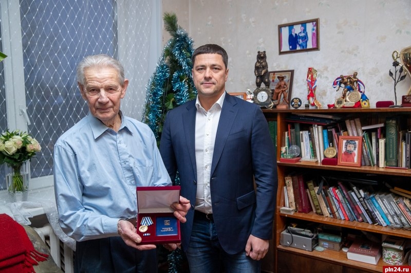 Губернатор Псковской области Михаил Ведерников наградил бывшего узника концлагерей, Почетного гражданина Пскова и заслуженного строителя Российской Федерации Анатолия Васильева медалью «За заслуги перед Псковской областью». Как сообщили Псковской Ленте Новостей в пресс-службе администрации региона, одну из самых почетных наград региона глава области вручил сегодня, 8 февраля, придя к ветерану в гости.