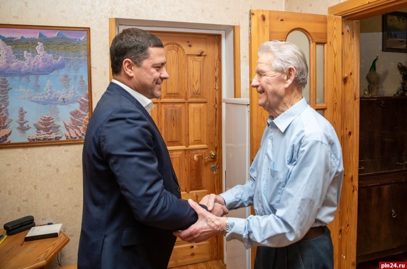 В ходе неформального общения Почетный гражданин Пскова поделился с главой региона воспоминаниями о Великой Отечественной войне, рассказал о своем жизненном и трудовом пути, а также о том, чем он занимается в настоящее время. Несмотря на почтенный возраст, он по-прежнему увлекается спортом. «С таких людей надо брать пример», - заметил Михаил Ведерников.