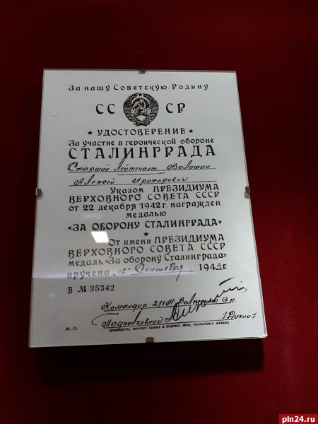 К 100-летнему юбилею Героя Советского Союза полковника в отставке Алексея Волошина в Центральном музее Росгвардии открылась экспозиция, на которой впервые демонстрируются документы, фотографии и подлинные вещи времён Великой Отечественной войны, отражающие подвиг и мужество этого выдающегося человека, сообщили Псковской Ленте Новостей в пресс-службе региональной Росгвардии.