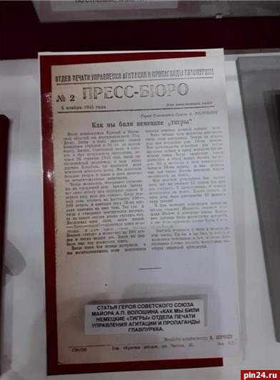 Кроме того, впервые представлены фотографии, на которых Герой Советского Союза Алексей Волошин запечатлен в первые дни Сталинградской битвы в 1942 году и в декабре 1945 года на торжественном мероприятии в Кремле, а также статья Алексея Прохоровича «Как мы били немецкие «тигры»», опубликованная в 1947 году в листке пресс-бюро отдела печати, агитации и пропаганды ГлавПУРа РККА.