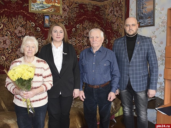 От имени секретаря Генерального совета партии «Единая Россия» Андрея Турчака с 89-летием поздравила ветерана Владимира Бойцова замсекретаря регионального отделения партии, глава Пскова Елена Полонская.