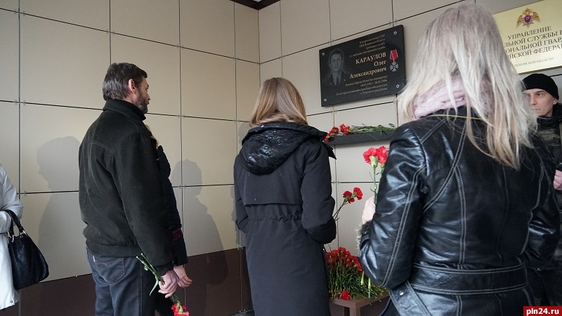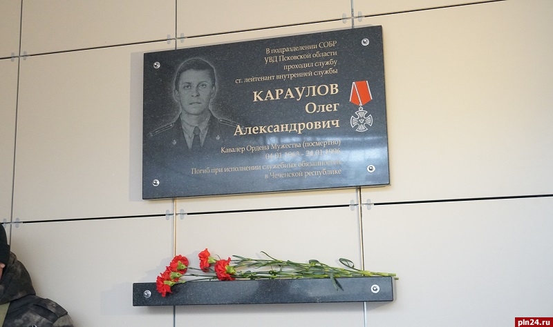 В Пскове состоялось открытие мемориальной доски кавалера ордена Мужества старшего лейтенанта внутренней службы Олега Караулова, погибшего при исполнении служебного долга в Северо-Кавказском регионе. Памятный знак установлен на фасаде здания специального отряда быстрого реагирования управления Росгвардии по Псковской области.