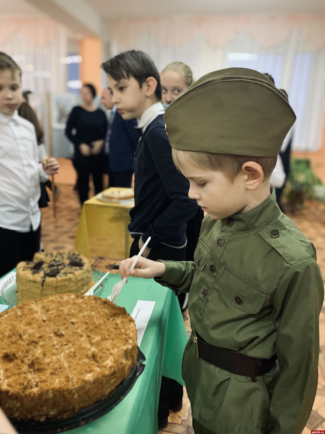 Сначала участники и гости фестиваля продегустировали пироги, приготовленные семьями для конкурса «Семейные рецепты». Затем гостям мероприятия предложили посетить выставку творческих работ на тему 75-летия Победы, а также рисунков, посвященных подвигу бойцов легендарной шестой роты. Лучшие рисунки направят на областной конкурс творческих работ.