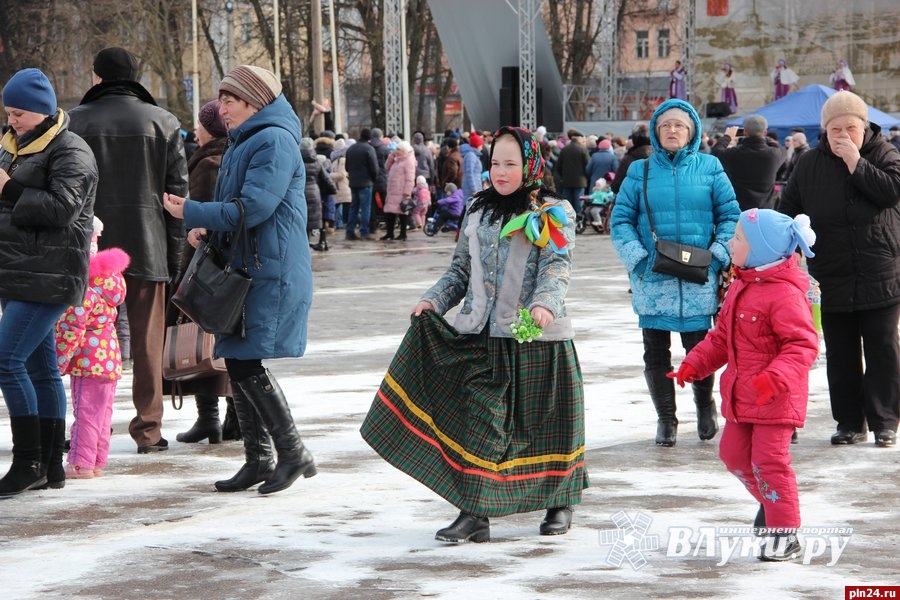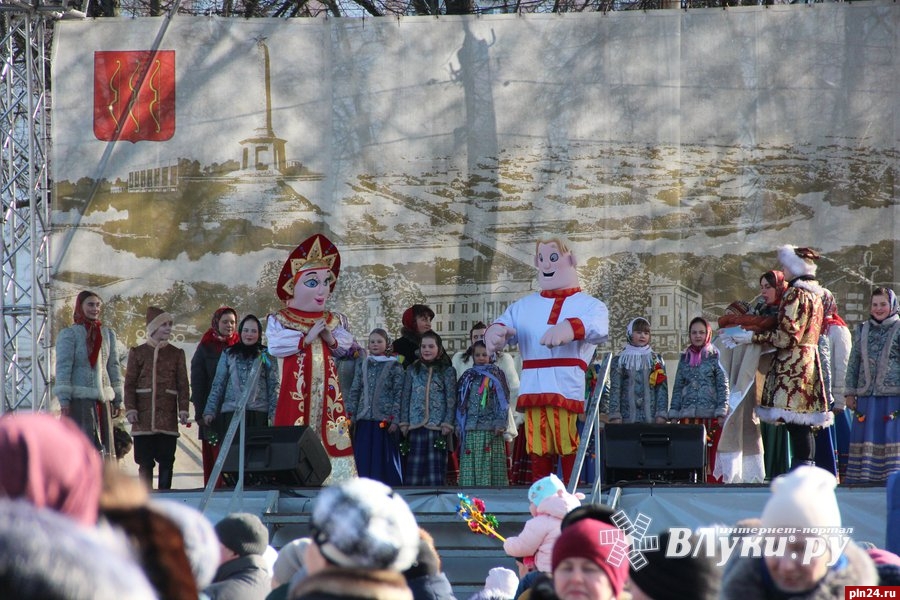 Жители и гости города Великие Луки отпраздновали широкую Масленицу на площади Ленина, сообщает портал «ВЛуки.ру».