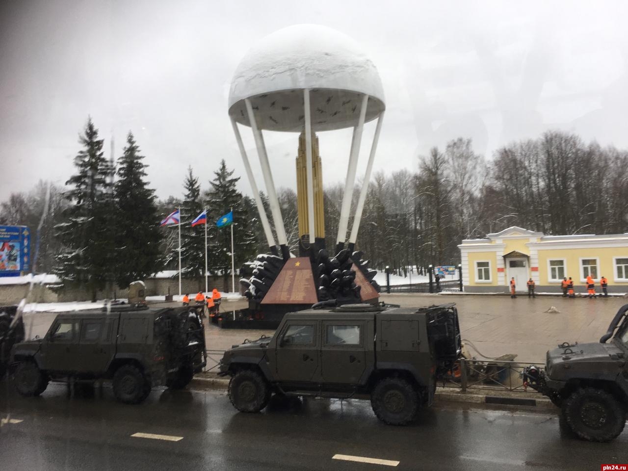 Как передает корреспондент Псковской Ленты Новостей, здесь проходят последние подготовительные работы к торжественным мероприятиям, люди и спецтехника очищают площадку от снега. Площадка у «Купола» оцеплена сотрудниками полиции и бронетехникой.
