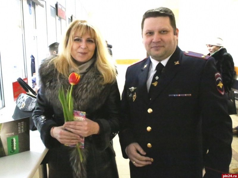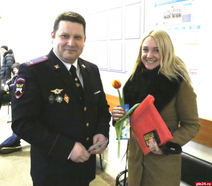Сегодня в Пскове в канун Международного женского дня полицейские подготовили для представительниц прекрасного пола, пользующихся государственными услугами, приятный сюрприз.