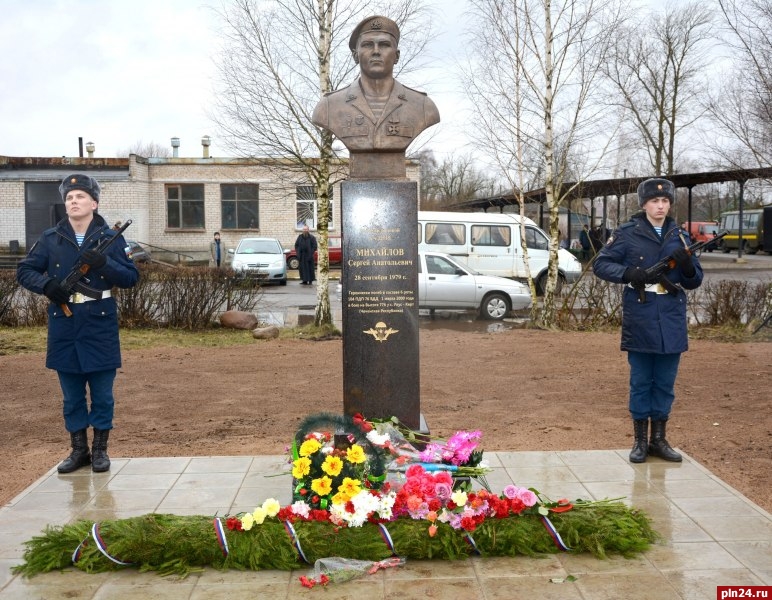 Торжественный митинг по случаю открытия бюста бойца 6-й роты 104-го полка 76-й гвардейской десантно-штурмовой дивизии Сергея Михайлова прошел в среду, 11 марта, в Новоржеве. Как сообщили Псковской Ленте Новостей в пресс-службе региональной администрации, мемориал установлен в сквере Памяти, рядом с домом, в котором жил военнослужащий.